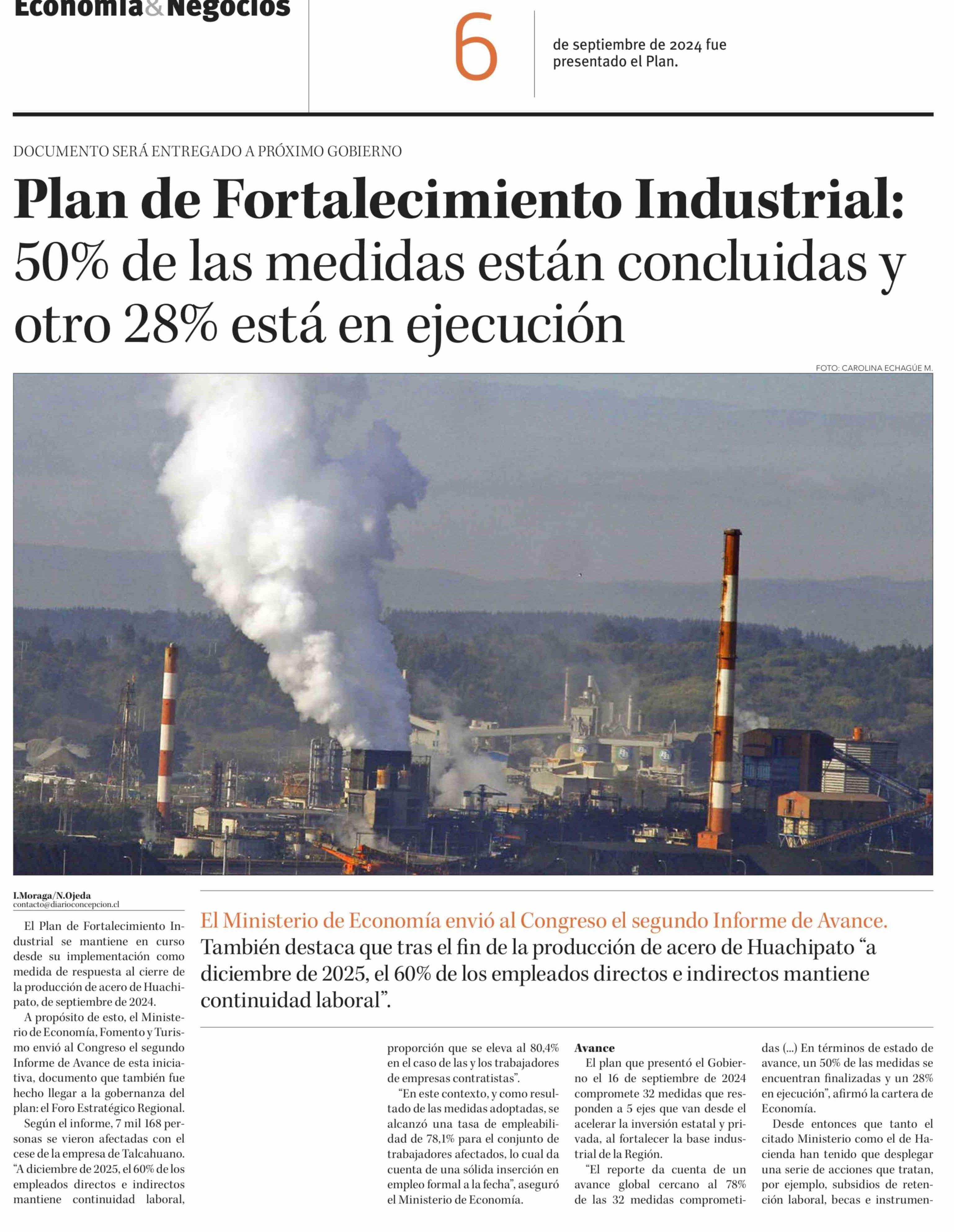 Título: Plan de Fortalecimiento Industrial: 50% de las medidas están concluidas y otro 28% está en ejecución