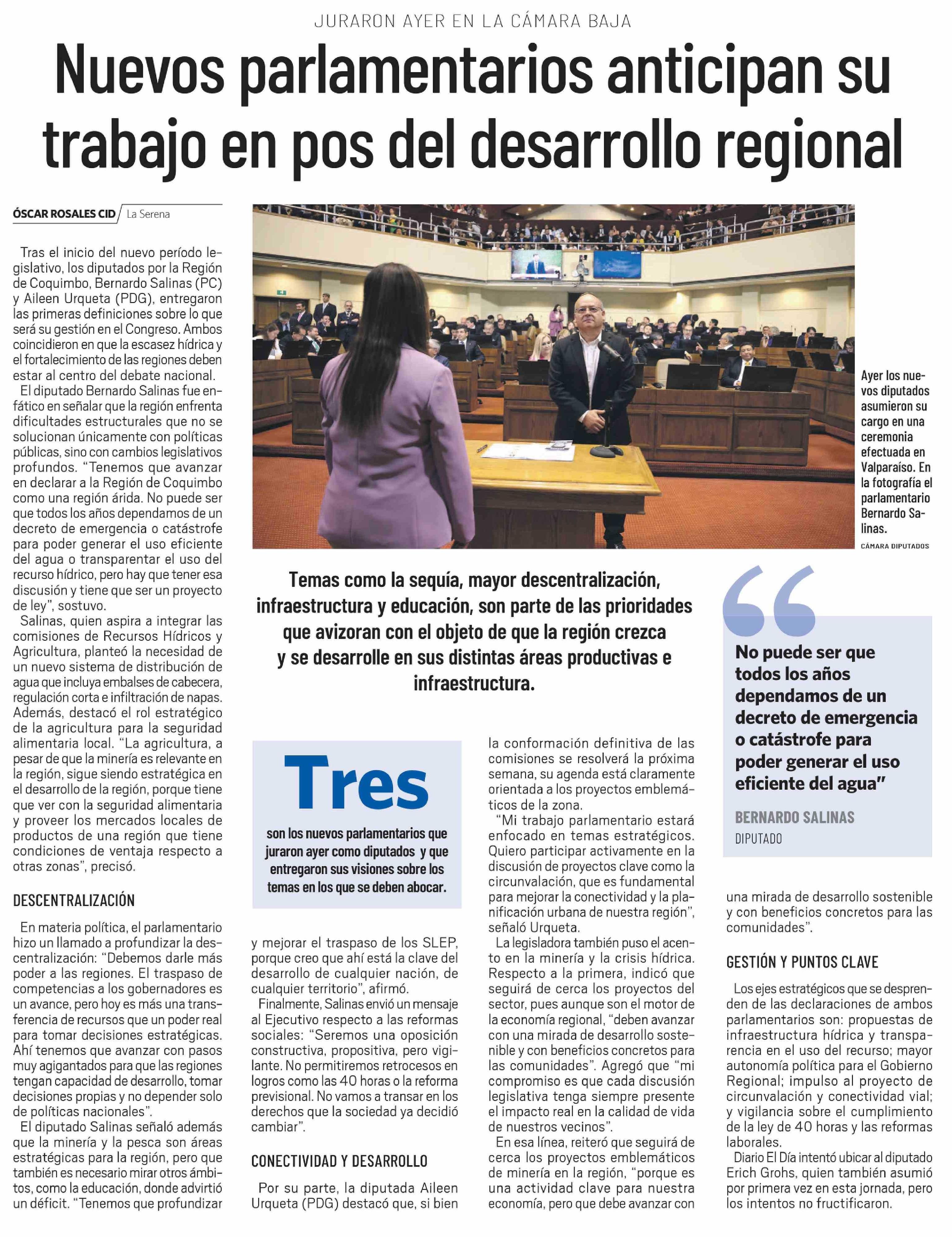 Título: Nuevos parlamentarios anticipan su trabajo en pos del desarrollo regional