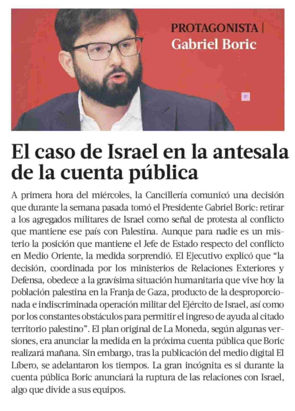 El caso de Israel en la antesala de la cuenta pública 31-05-2025 La Tercera |