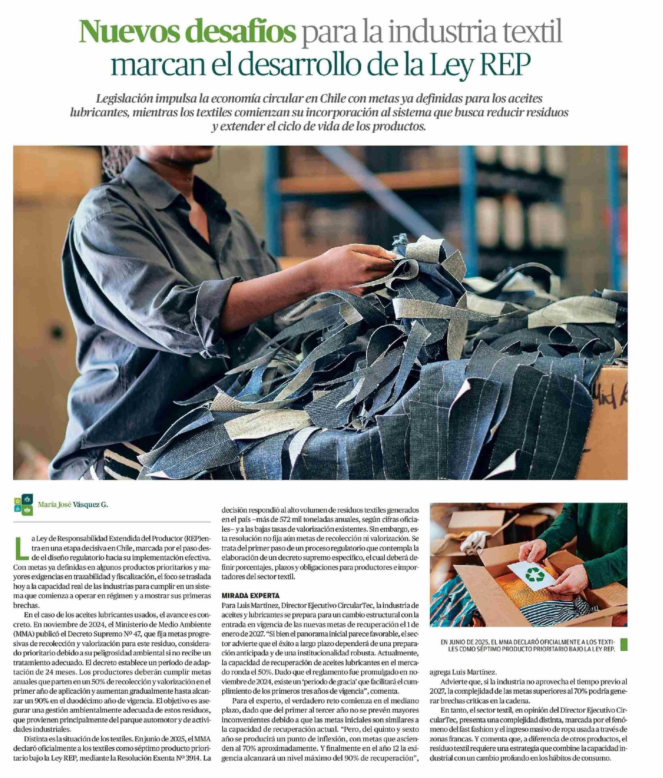 Título: Nuevos desafios para la industria textil marcan el desarrollo de la Ley REP