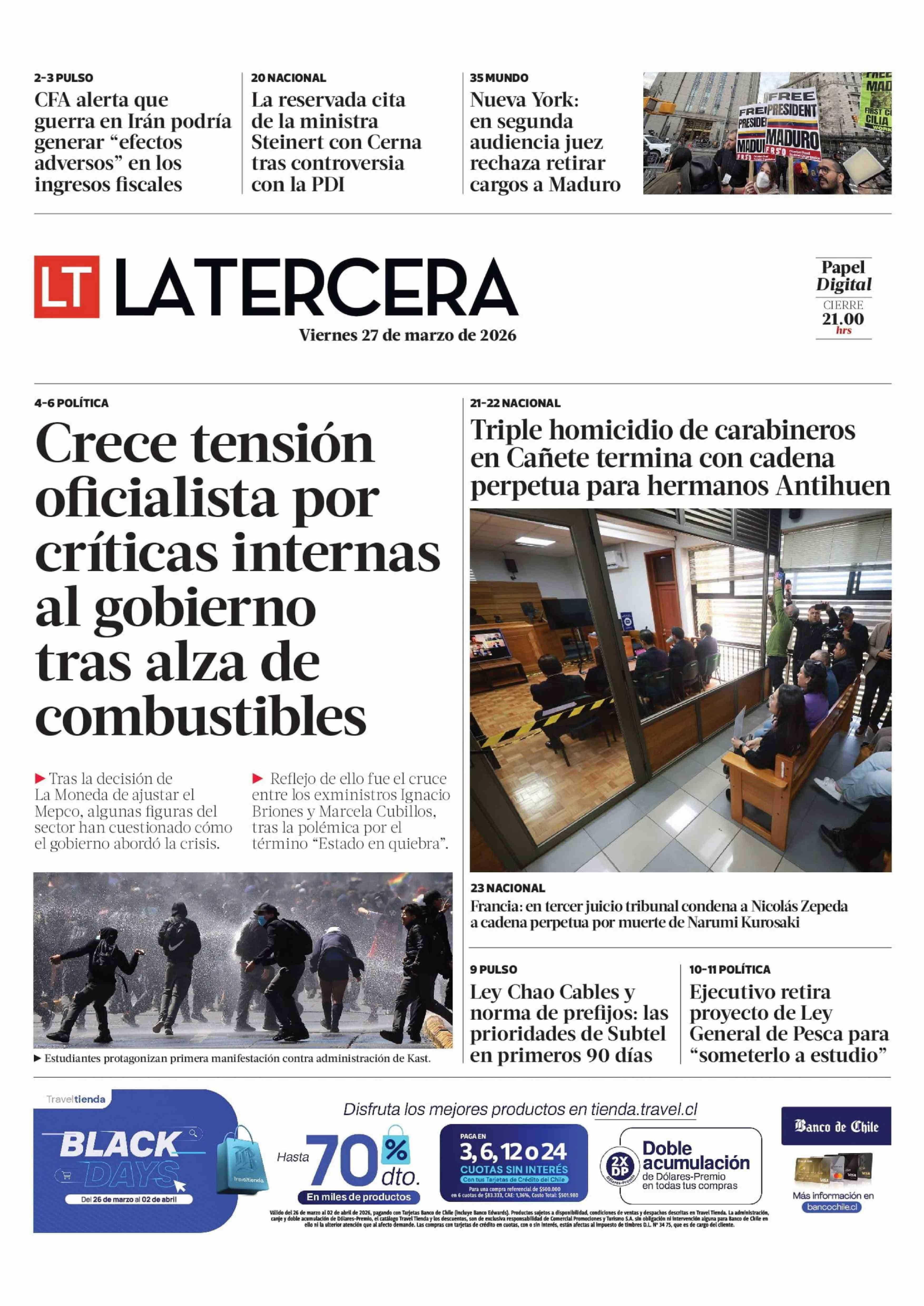 Fecha: 27-03-2026 Sector: Portada Región: Región Metropolitana de Santiago