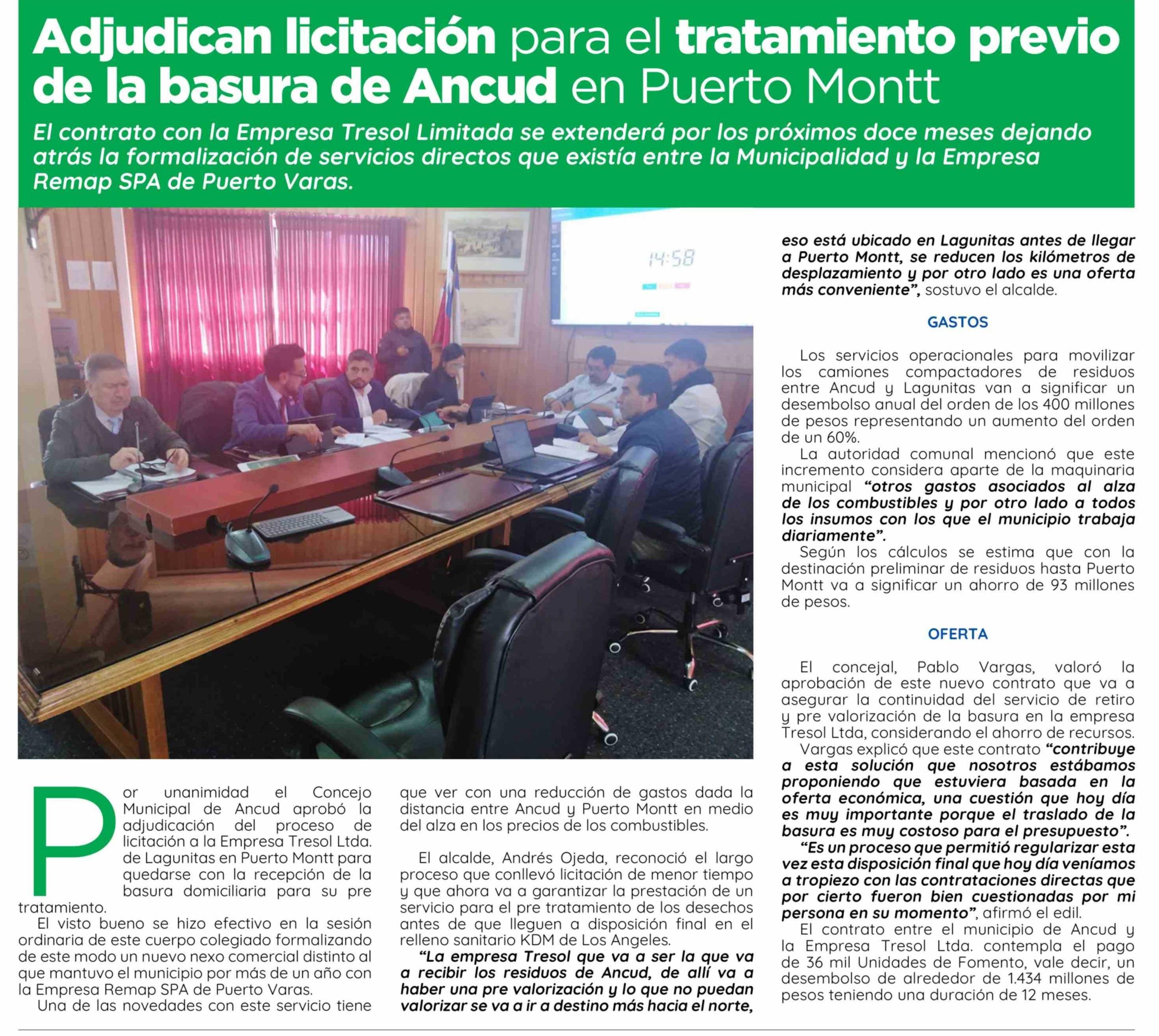 Adjudican licitación para el tratamiento previo de la basura de Ancud en Puerto Montt 08-04-2026 El Insular |