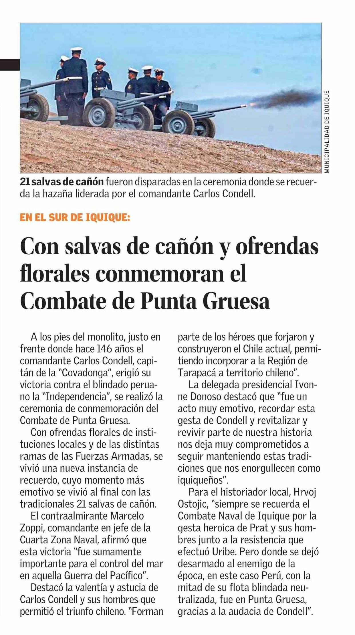 Con salvas de cañón y ofrendas florales conmemoran el Combate de Punta Gruesa 21-05-2025 El Mercurio |