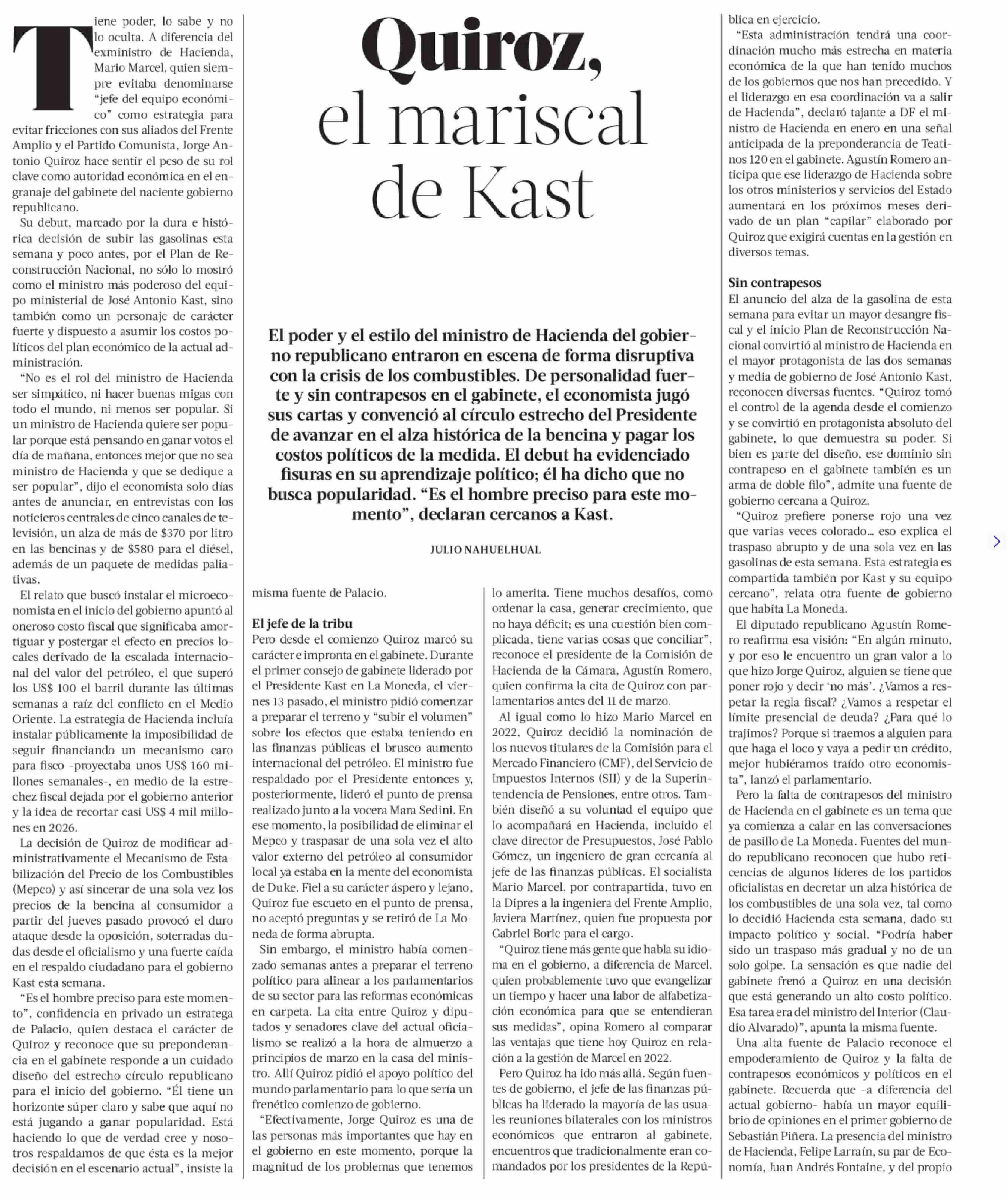 Título: Quiroz, el mariscal de Kast