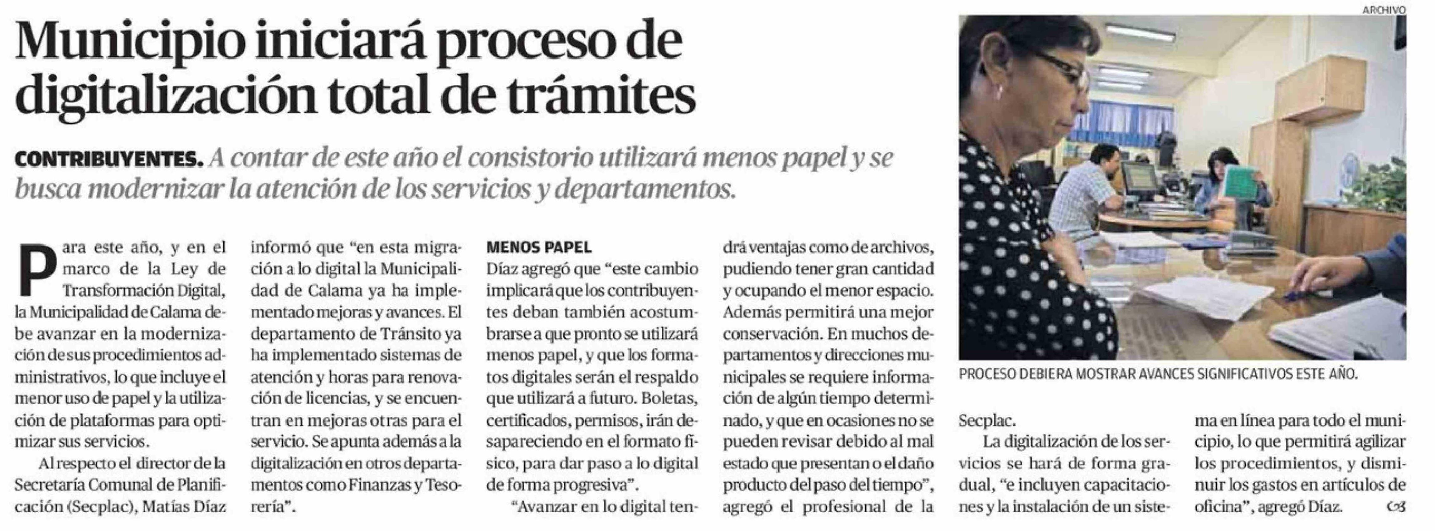 Municipio iniciará proceso de digitalización total de trámites 11-02-2026 El Mercurio de Calama |