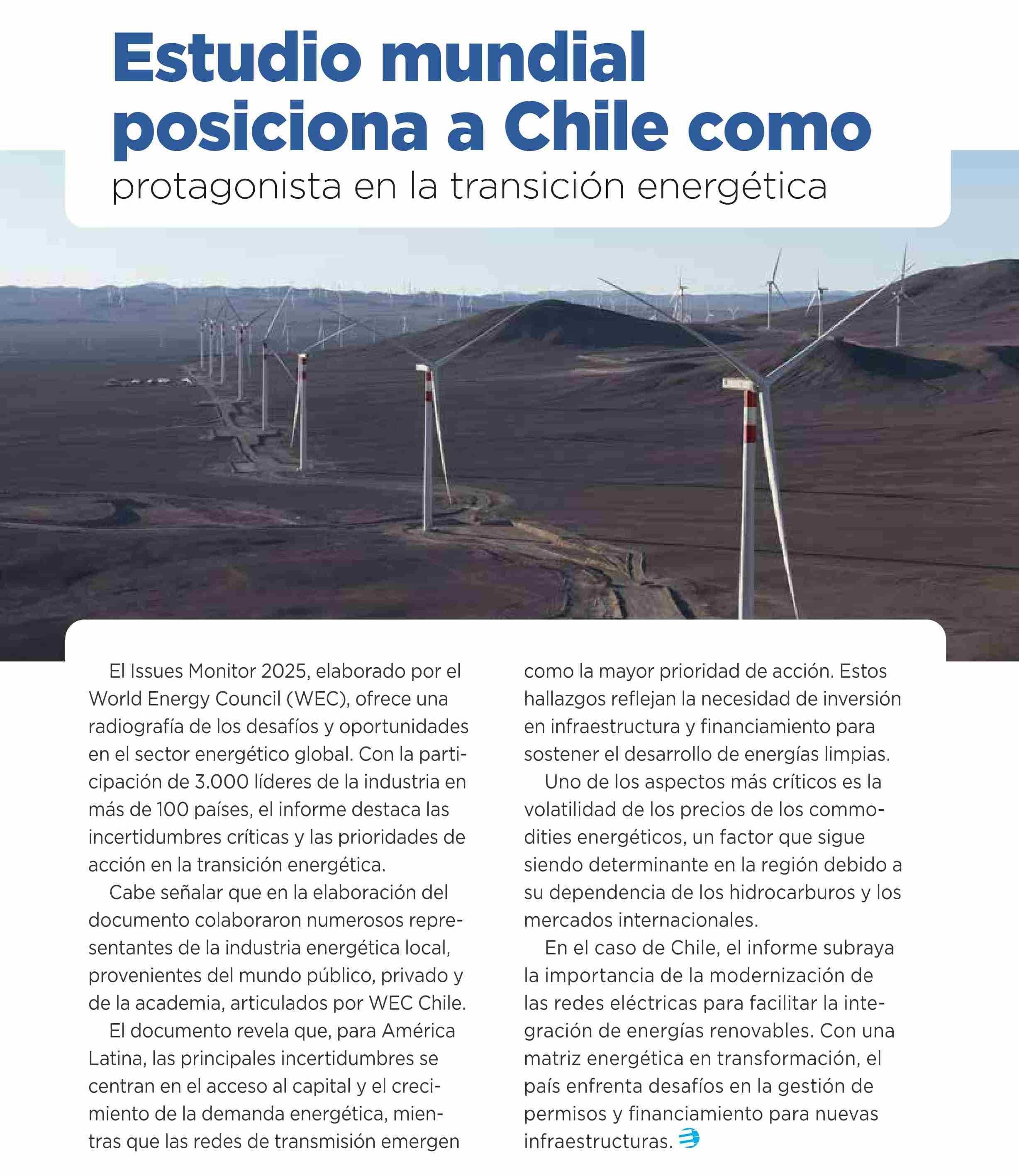 Estudio mundial posiciona a Chile como protagonista en la transición energética 29-03-2025 Revista Electricidad |