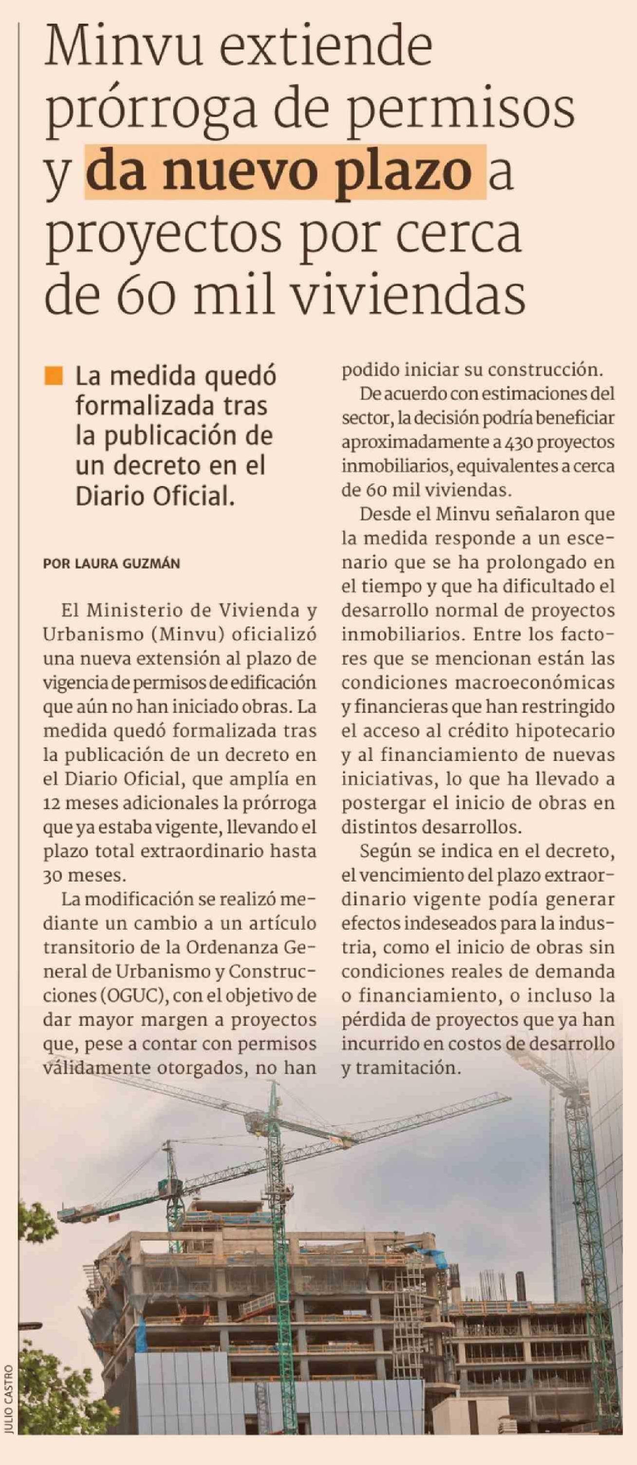 Minvu extiende prórroga de permisos y da nuevo plazo a proyectos por cerca de 60 mil viviendas 17-03-2026 Diario Financiero |