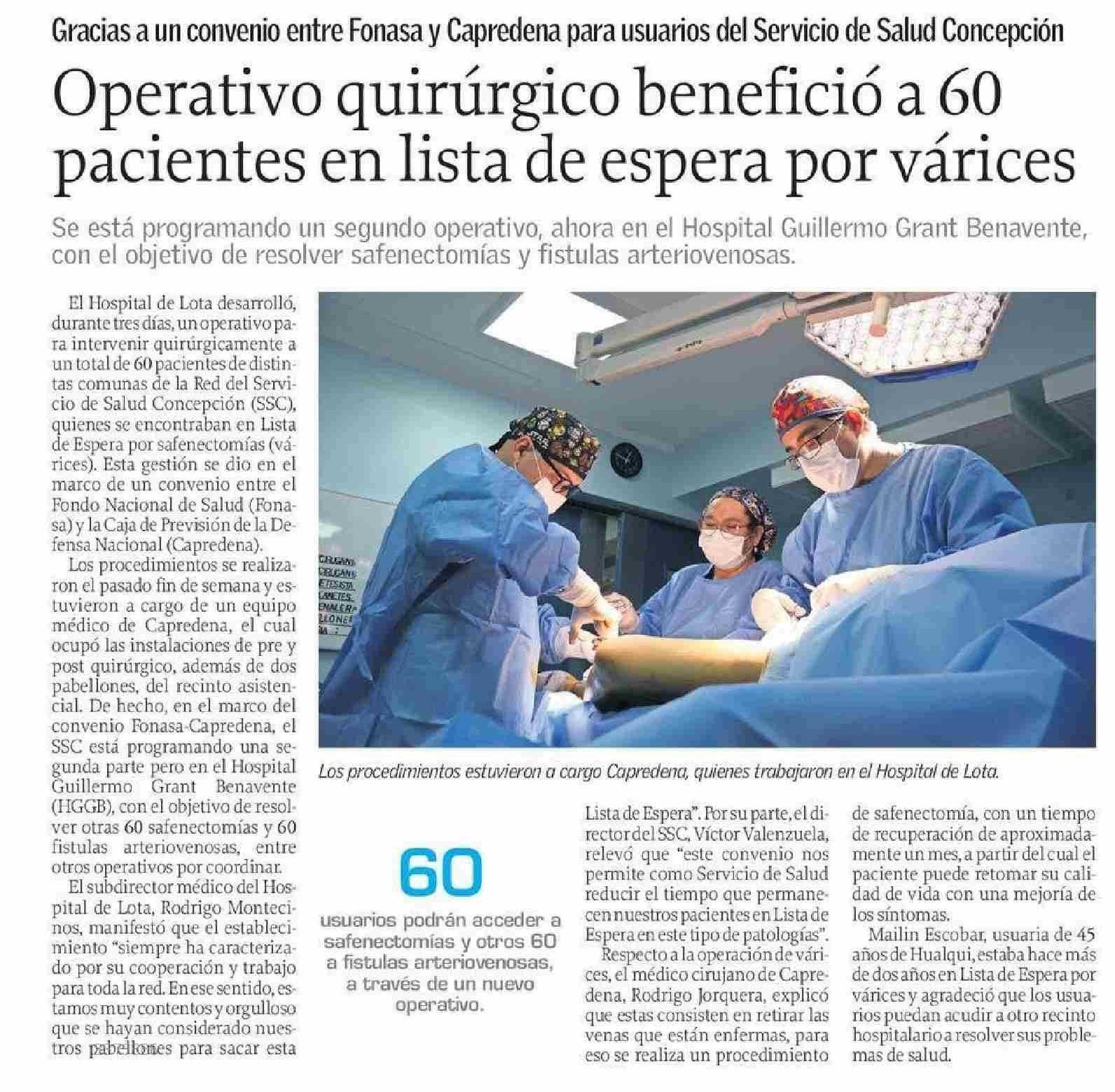 Título: Operativo quirúrgico benefició a 60 pacientes en lista de espera por várices