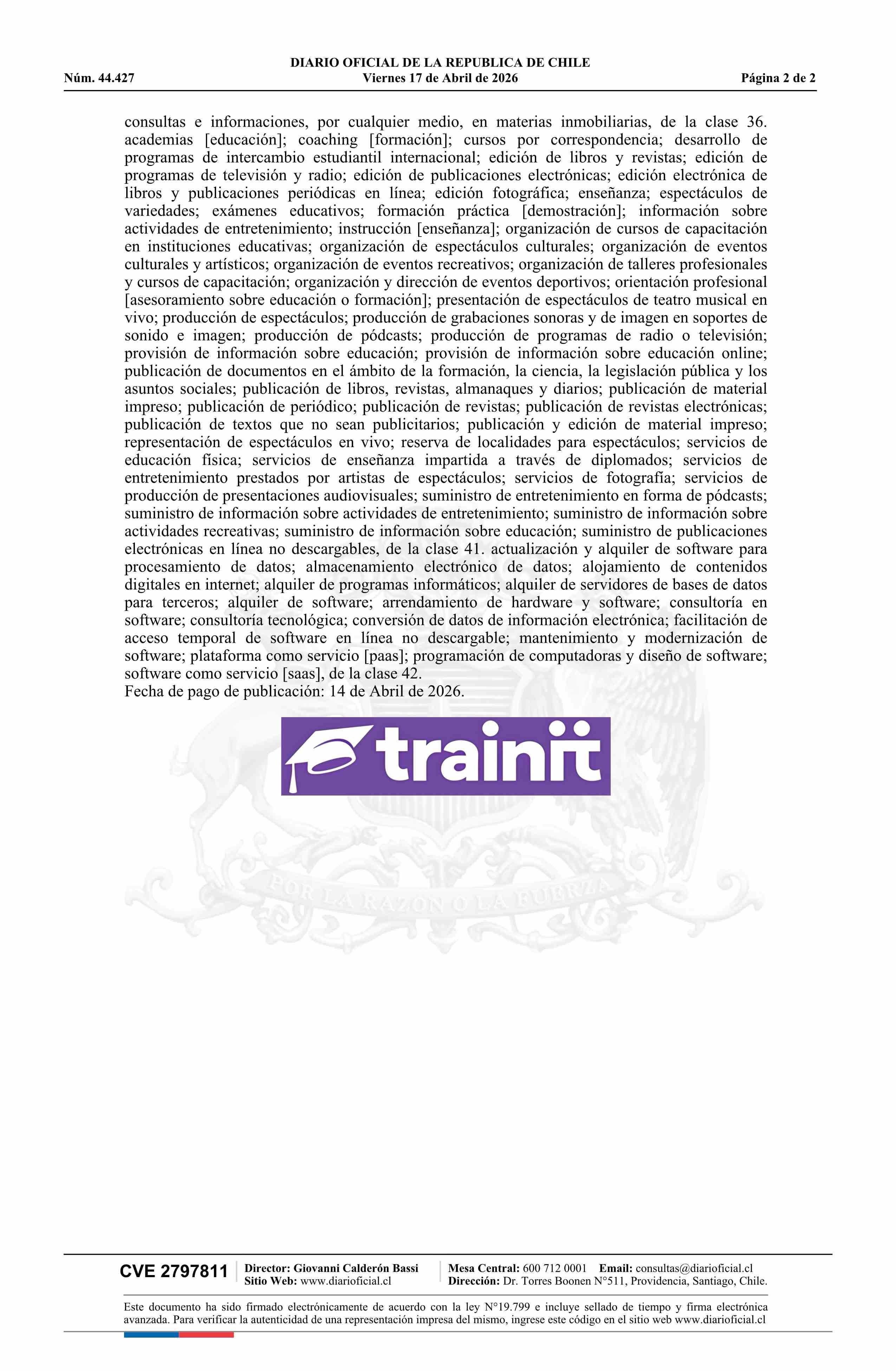 Fuente: Diario Oficial Edición Electrónica (Diario Oficial de Chile - 6 Marcas Y Patentes) Página(s): 123-124