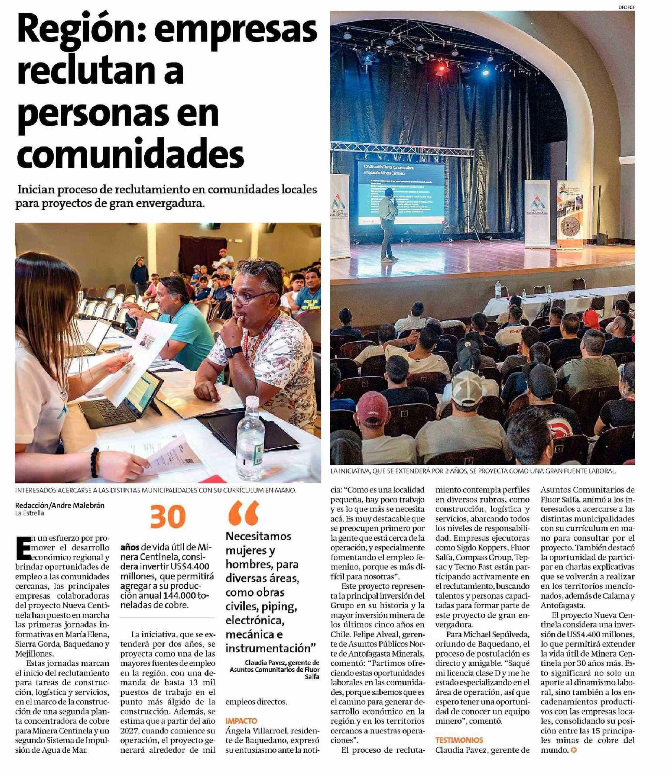Región: empresas reclutan a personas en comunidades 19-03-2024 La Estrella Del Loa |