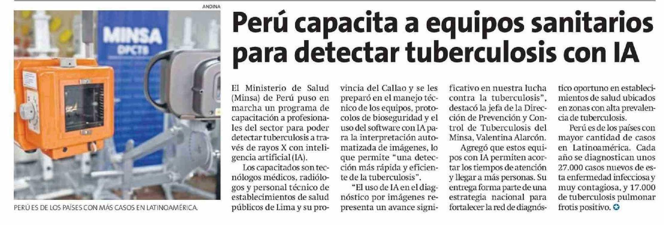 Perú capacita a equipos sanitarios para detectar tuberculosis con lA 14-04-2025 La Estrella de Tocopilla |