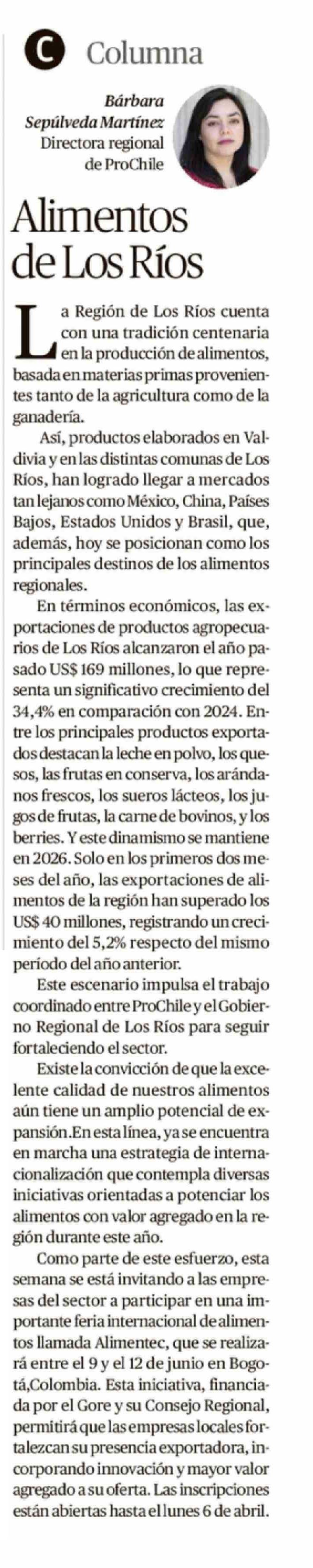 COLUMNAS DE OPINIÓN: Alimentos de Los Ríos 05-04-2026 Diario Austral Región de Los Ríos |