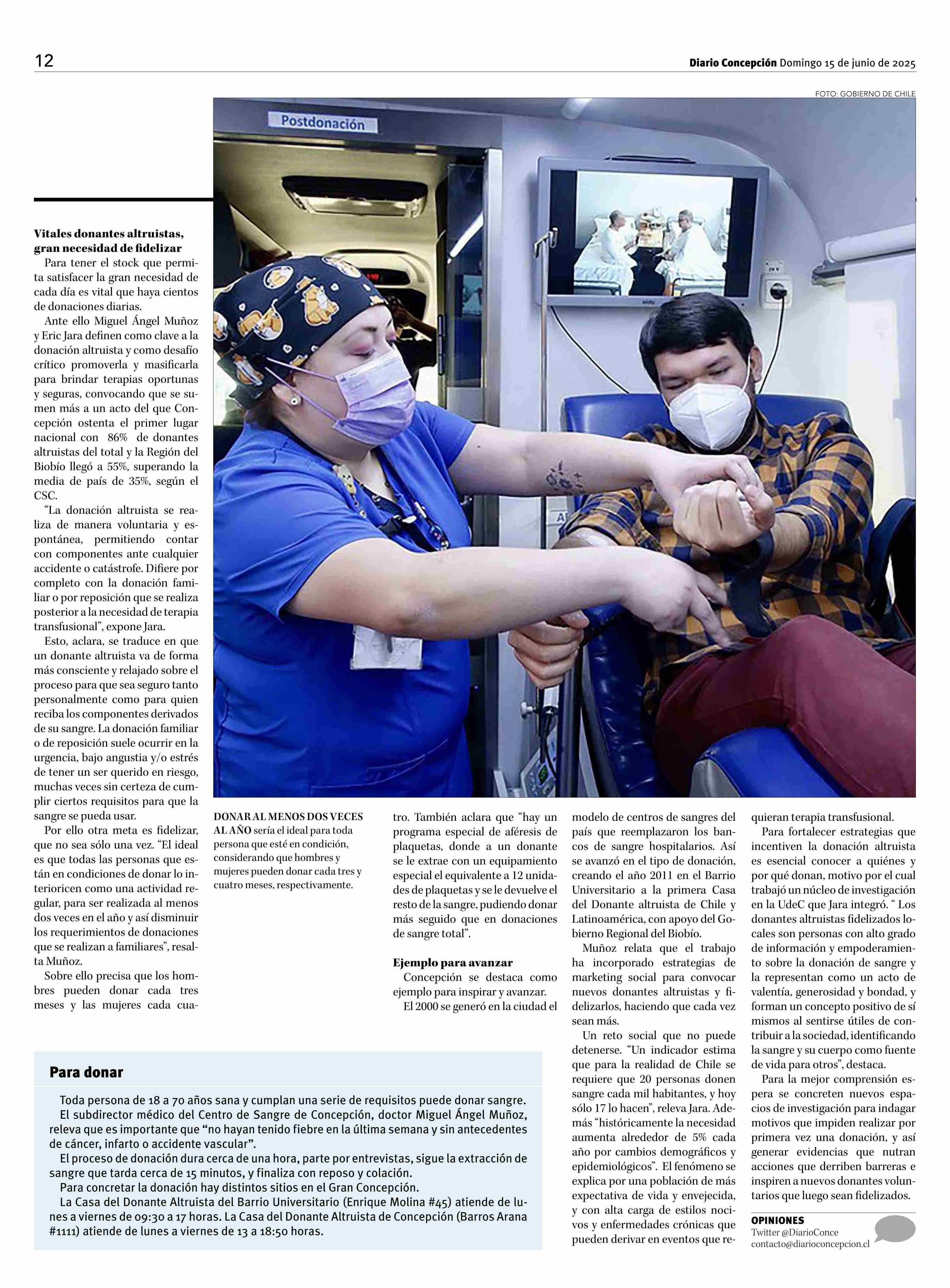Donación altruista de sangre: el reto de masificar un acto desinteresado que ayuda a salvar tres vidas 15-06-2025 Diario Concepción |