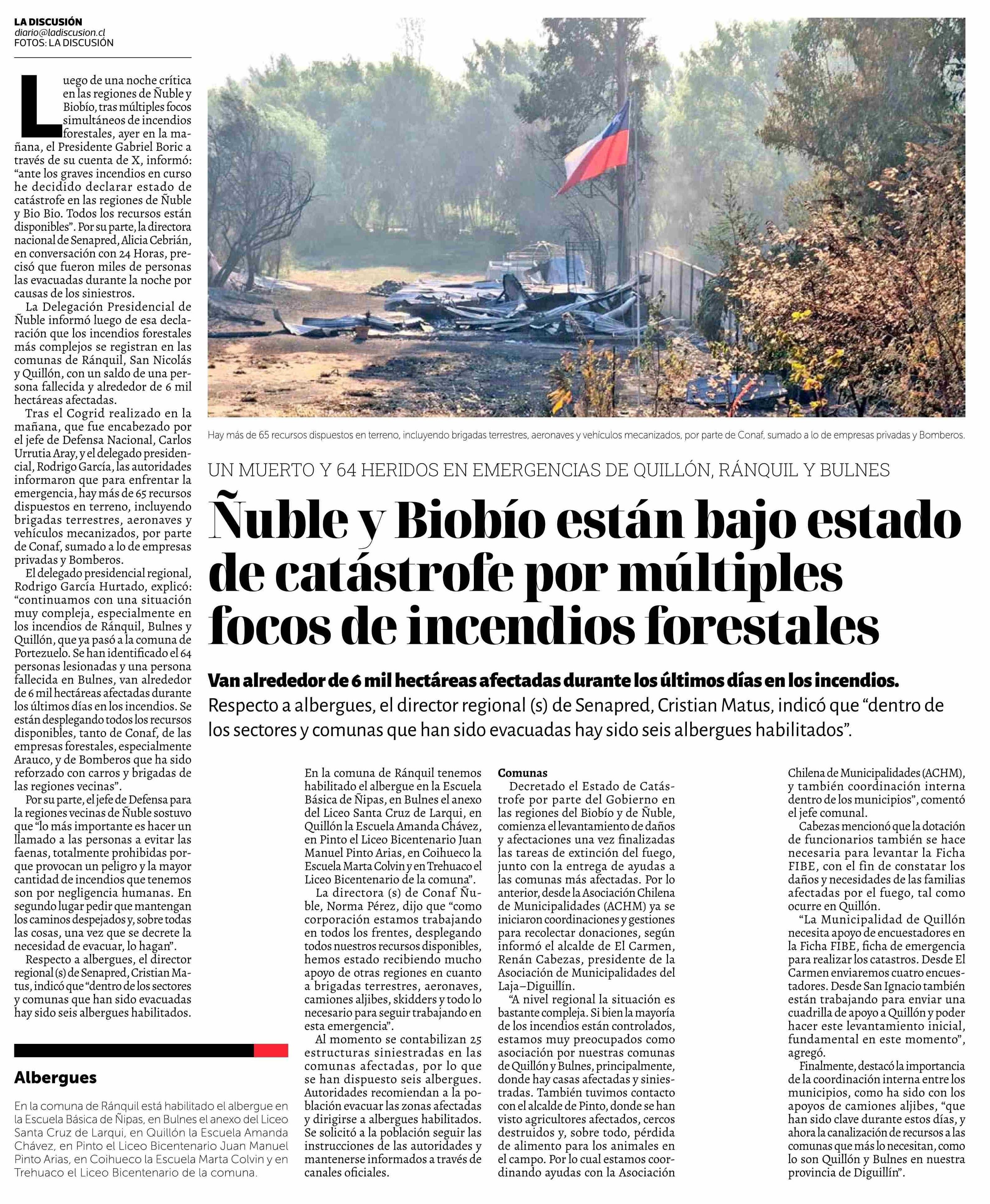 Título: Ñuble y Biobio están bajo estado de catástrofe por múltiples focos de incendios forestales