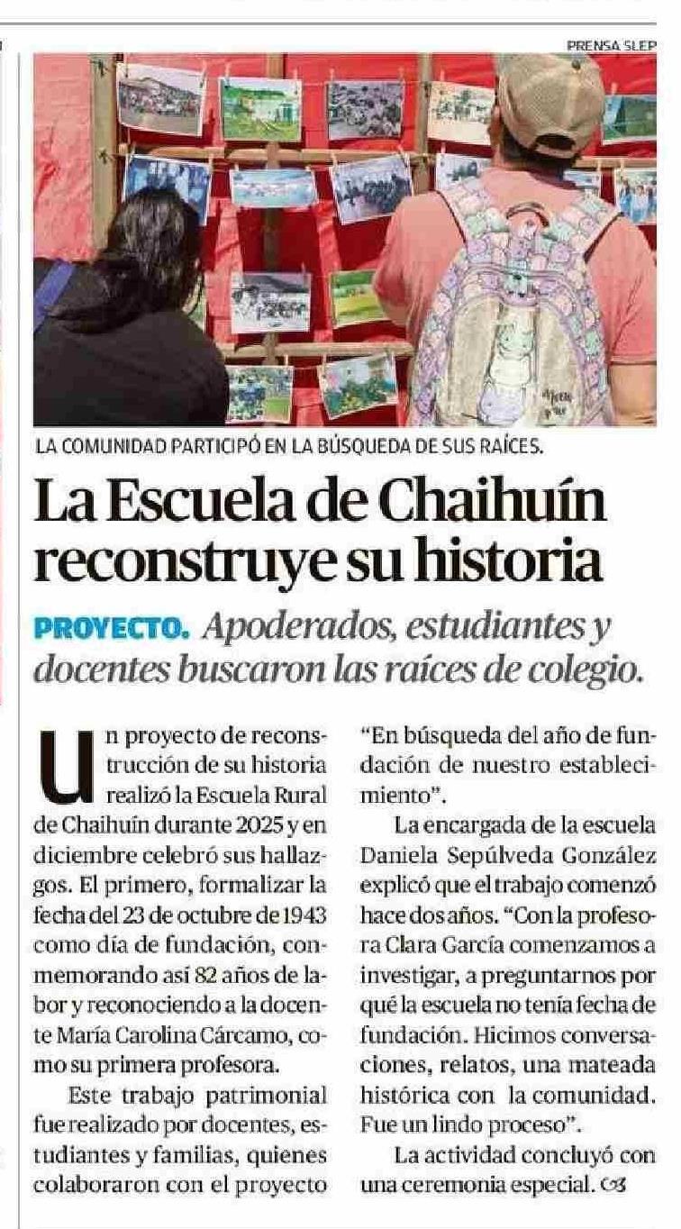 La Escuela de Chaihuín reconstruye su historia 06-01-2026 Diario Austral Región de Los Ríos |