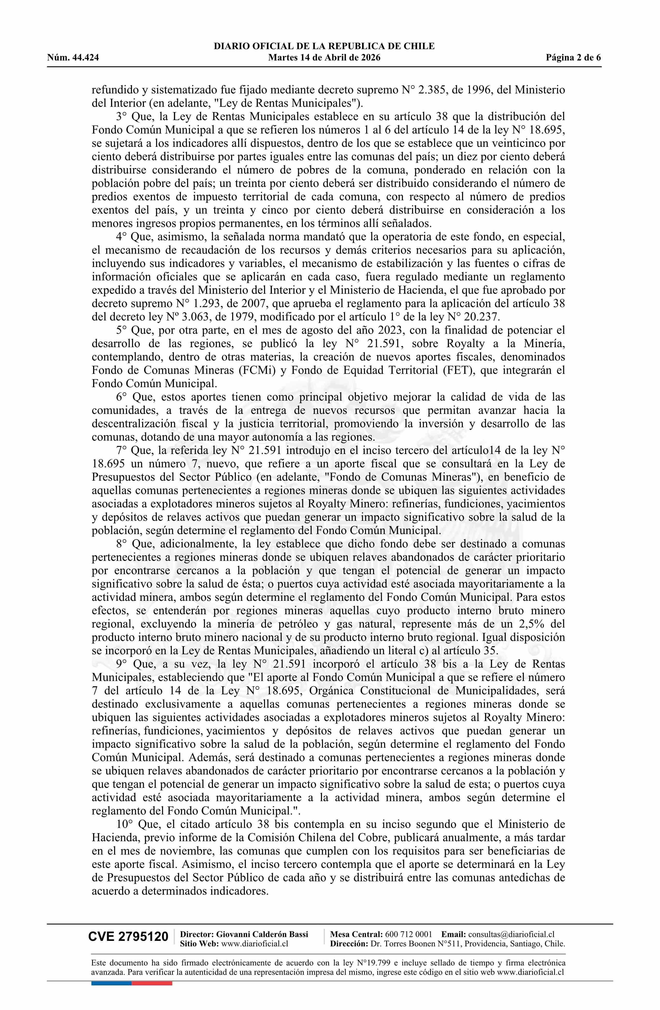 Fuente: Diario Oficial Edición Electrónica (Diario Oficial de Chile - 1 Normas Generales) Página(s): 1-6