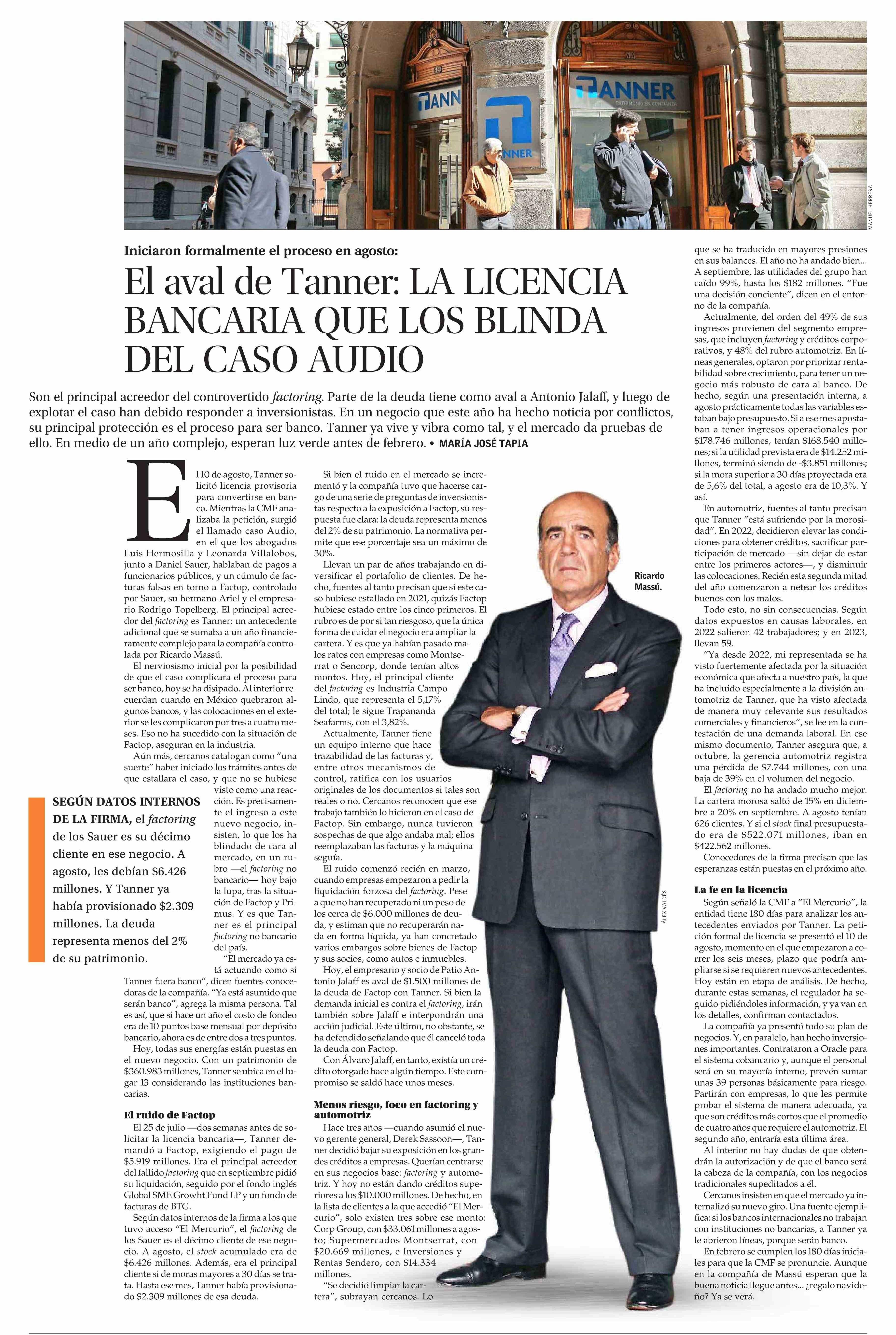 El aval de Tanner: LA LICENCIA BANCARIA QUE LOS BLINDA DEL CASO AUDIO 17-12-2023 El Mercurio |