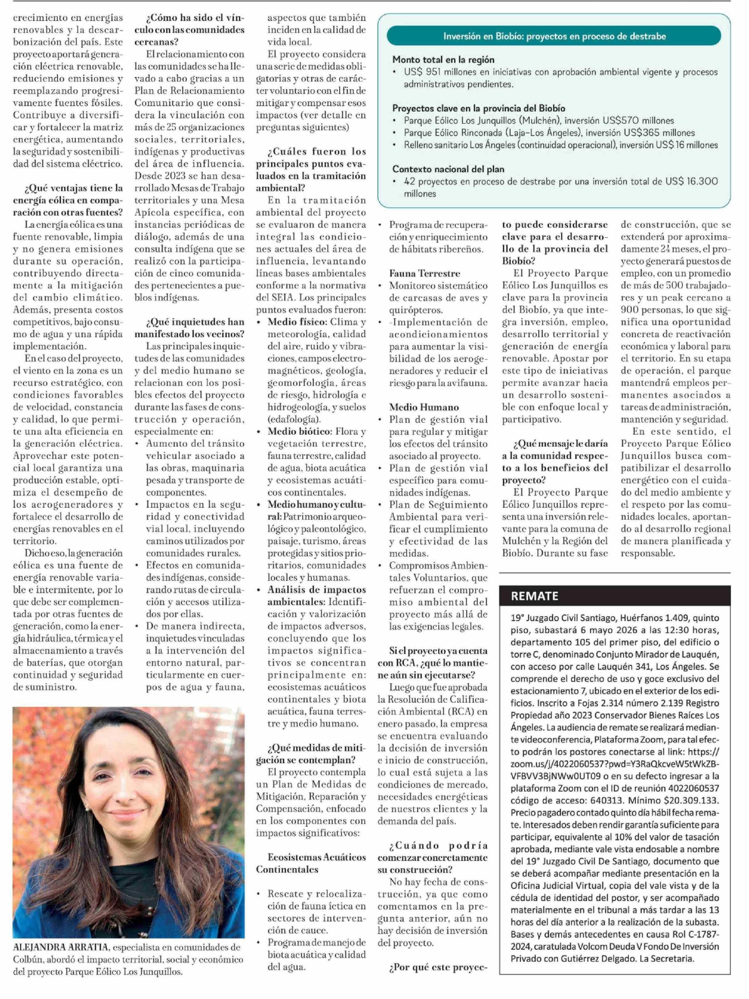 Título: Parque Eólico Los Junquillos: inversión de US$570 millones busca impulsar empleo y transición energética en Biobío