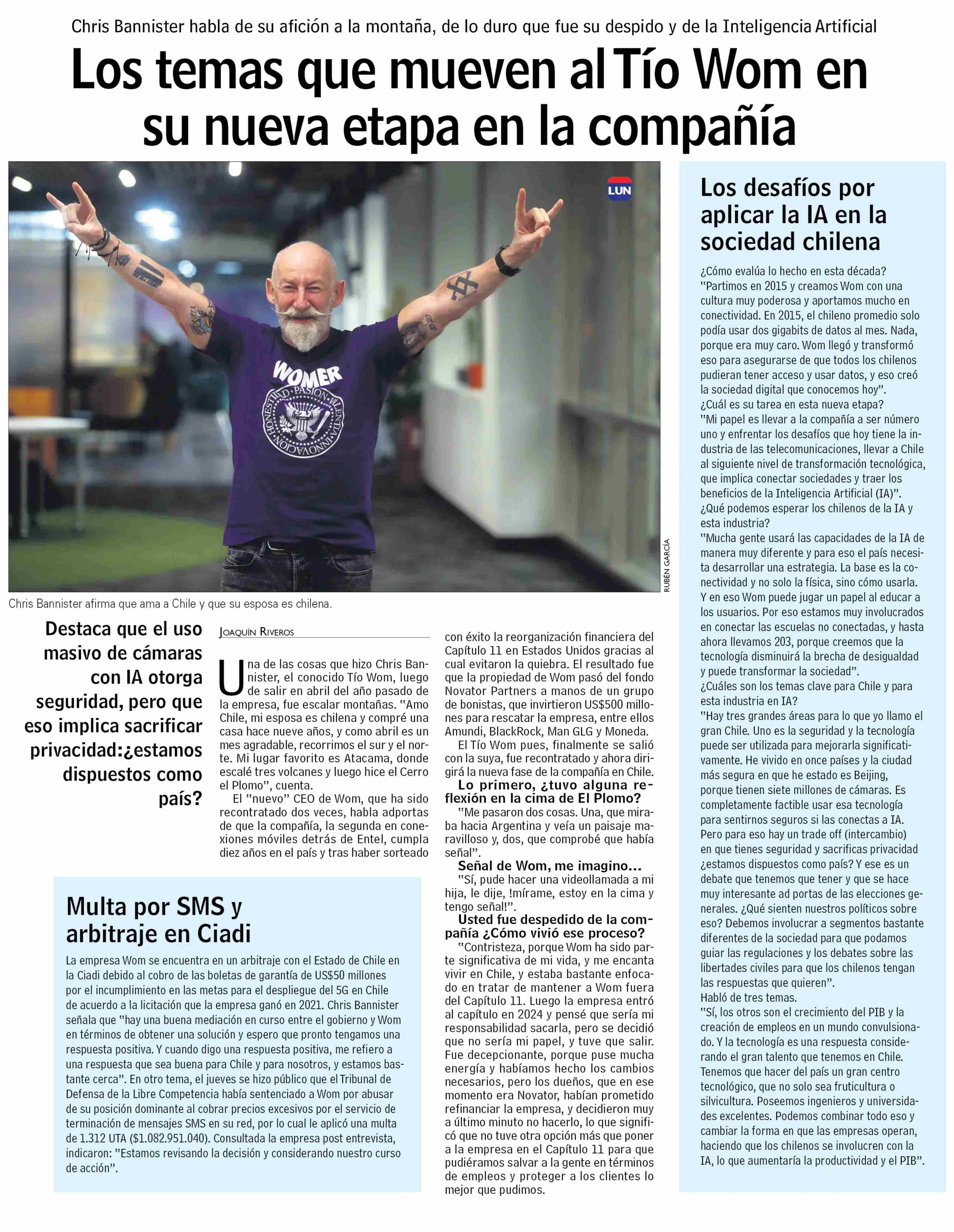 Los temas que mueven al Tío Wom en su nueva etapa en la compañía 14-06-2025 Las Últimas Noticias |