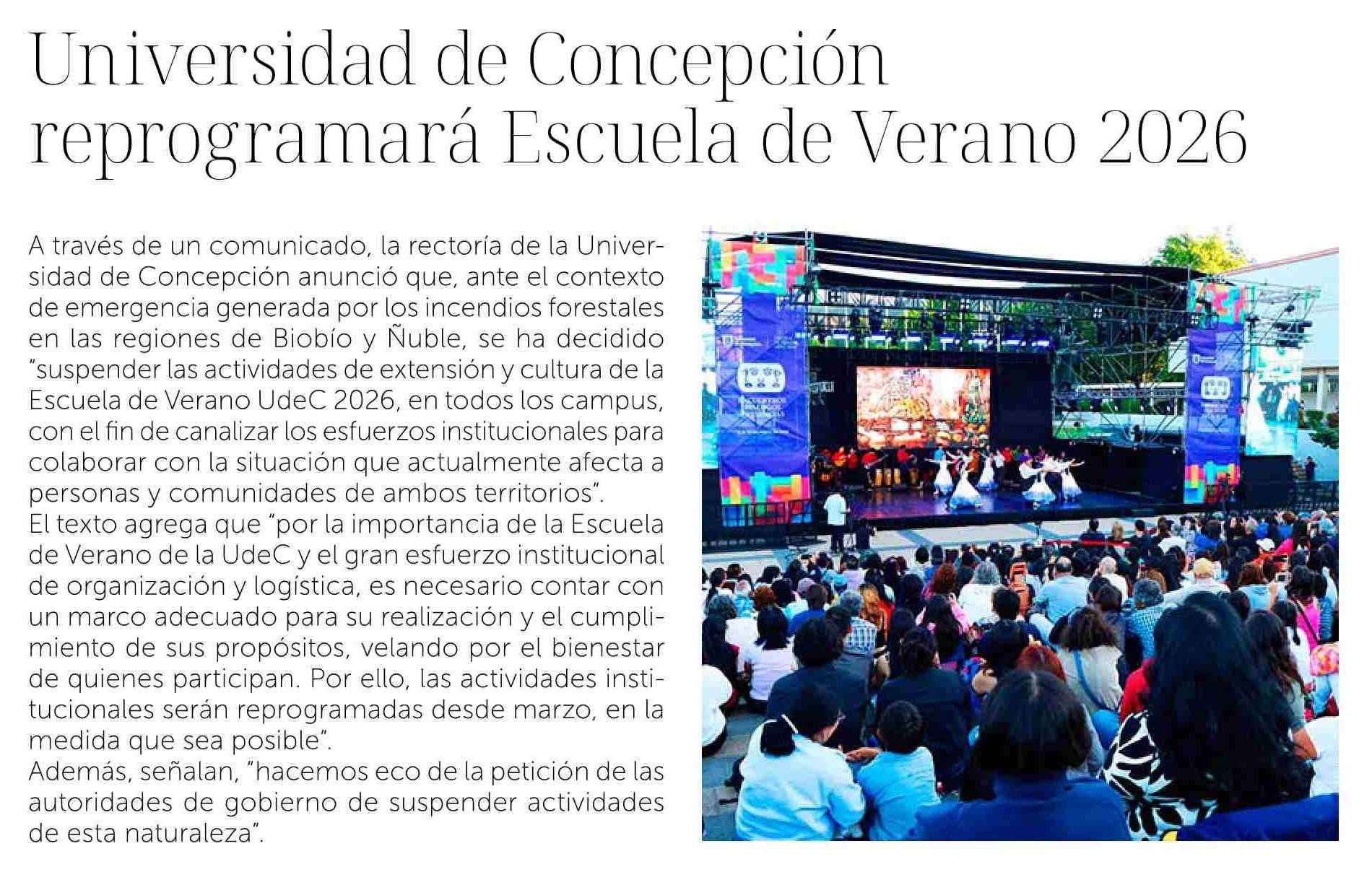 Universidad de Concepción reprogramará Escuela de Verano 2026 20-01-2026 La Discusión |