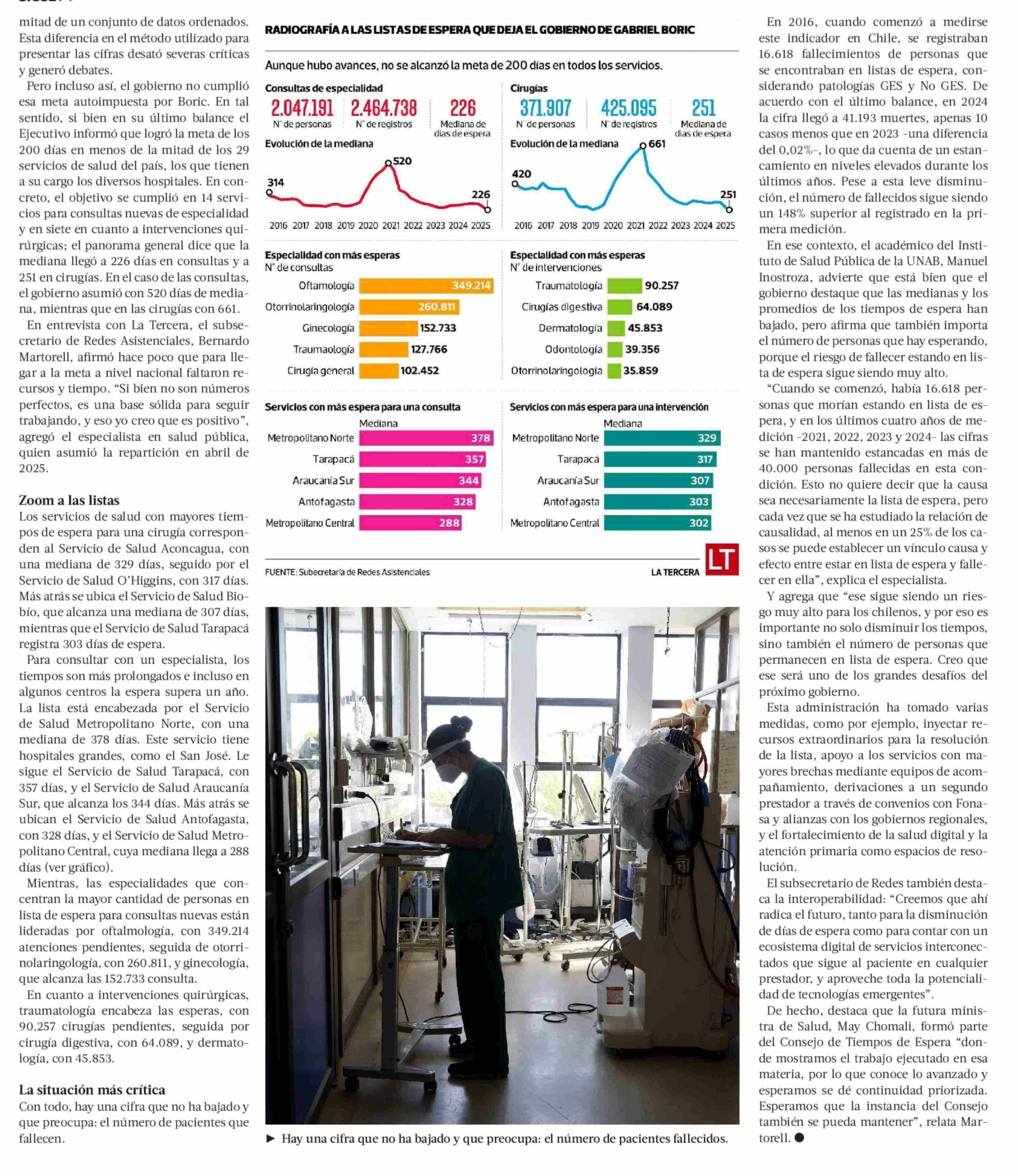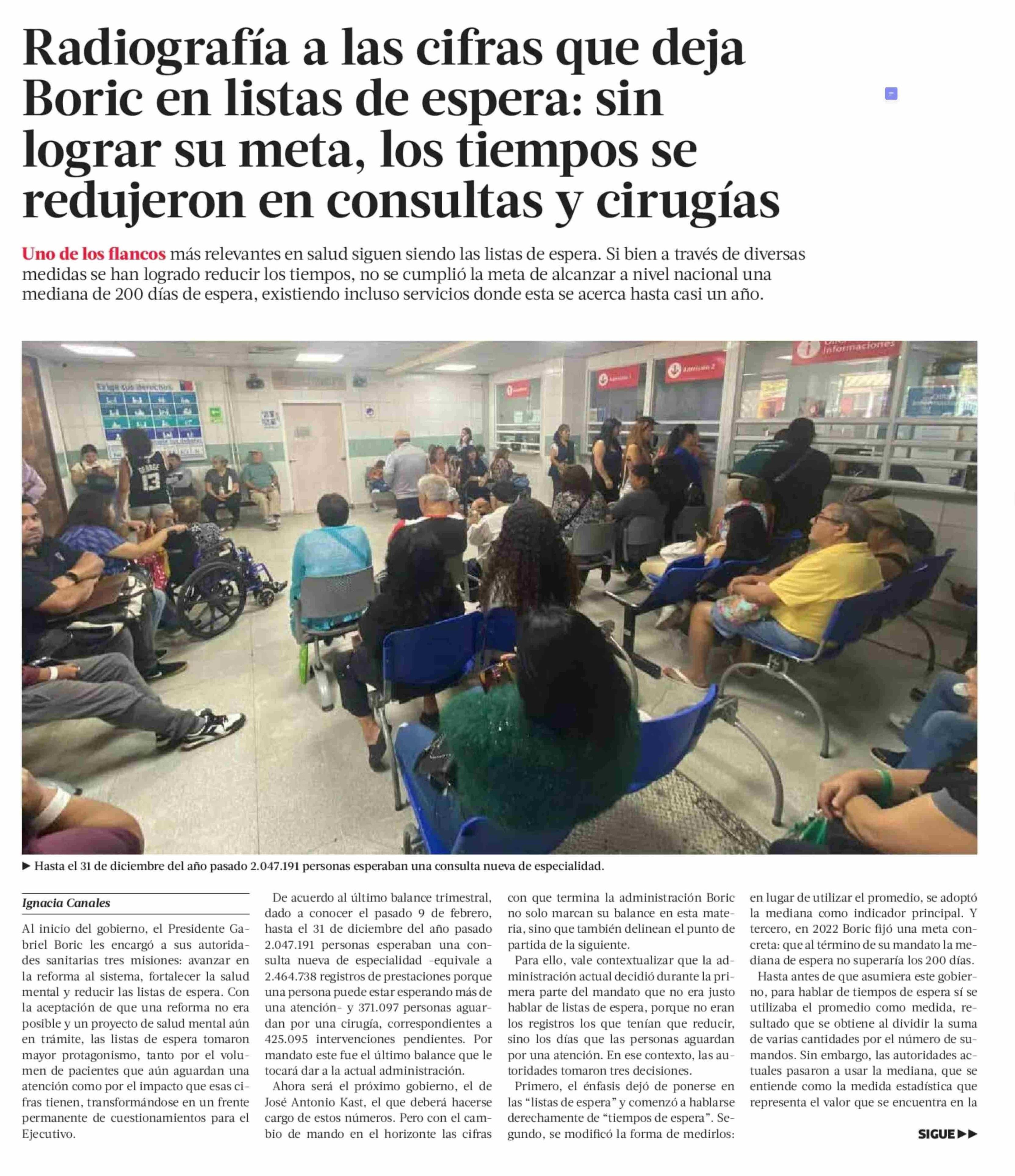 Título: Radiografía a las cifras que deja Boric en listas de espera: sin lograr su meta, los tiempos se redujeron en consultas y cirugías