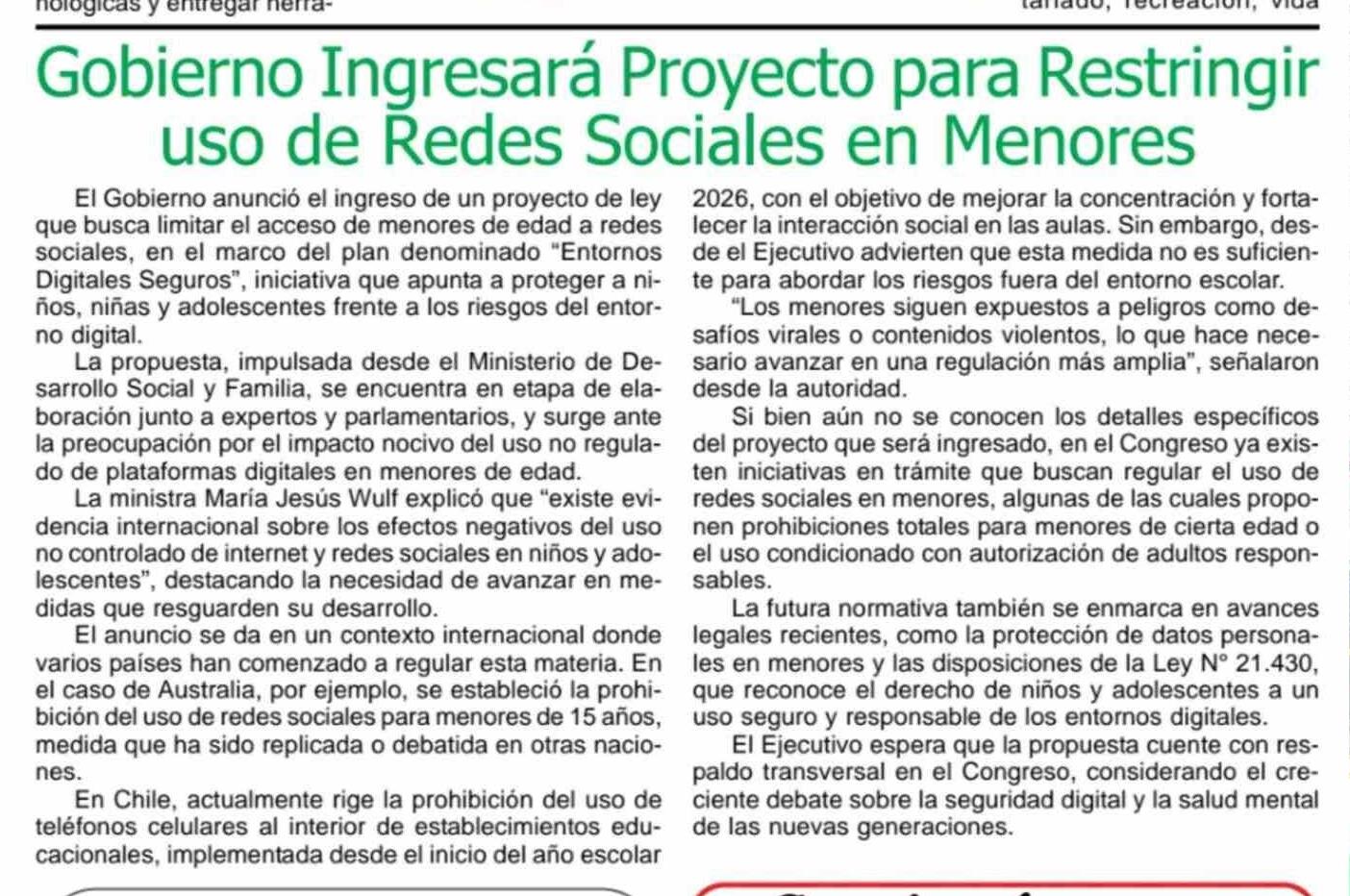Gobierno Ingresara Proyecto para Restringir uso de Redes Sociales en Menores 29-04-2026 Maule Hoy |