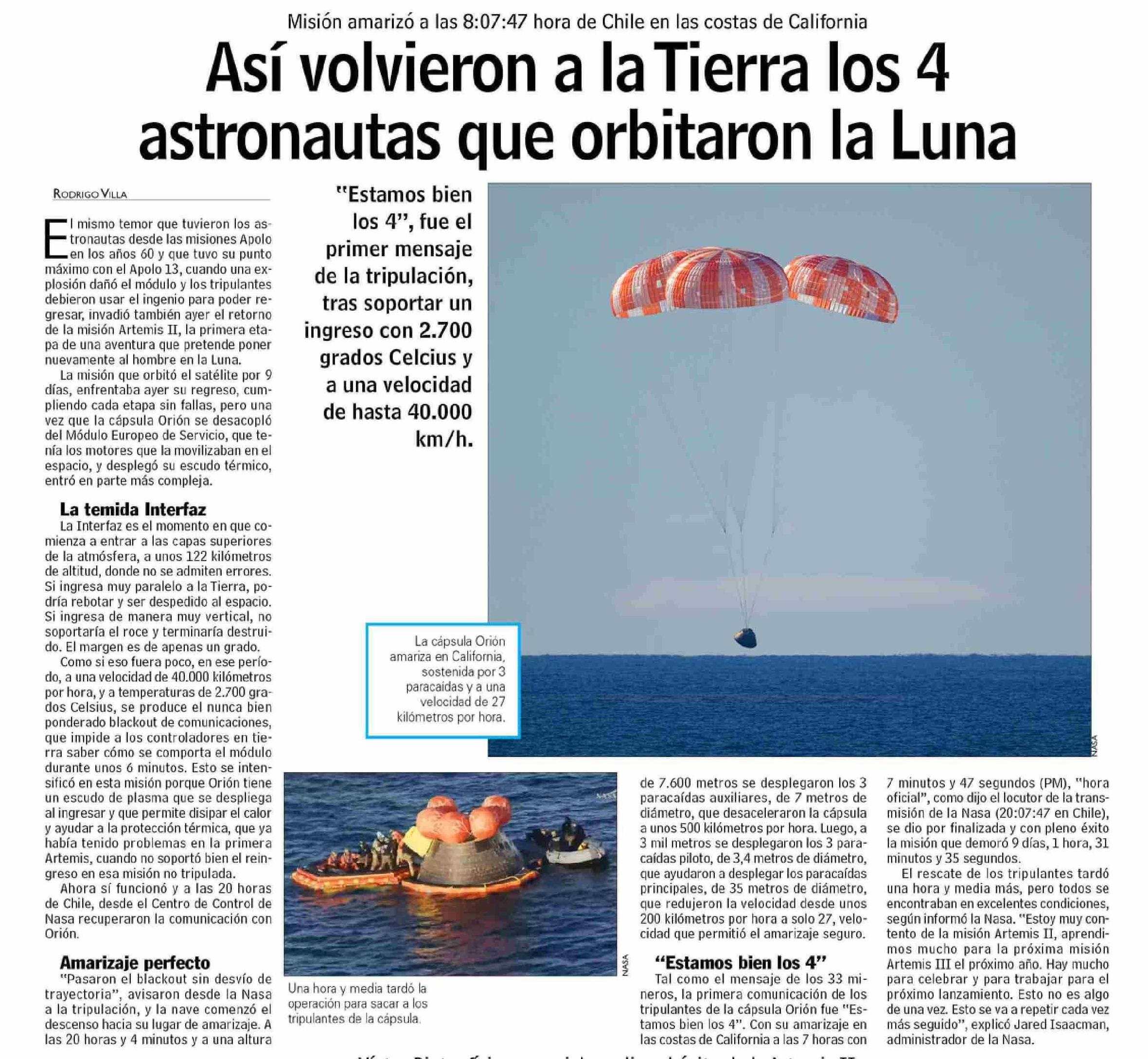 Título: Así volvieron a laTierra los 4 astronautas que orbitaron la Luna