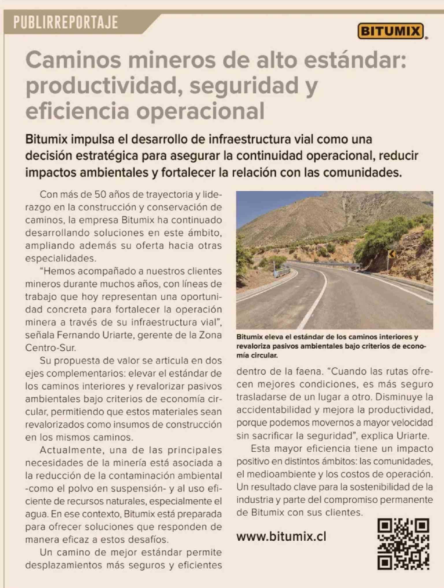 Caminos mineros de alto estándar: productividad, seguridad y eficiencia operacional 27-03-2026 Diario Financiero |