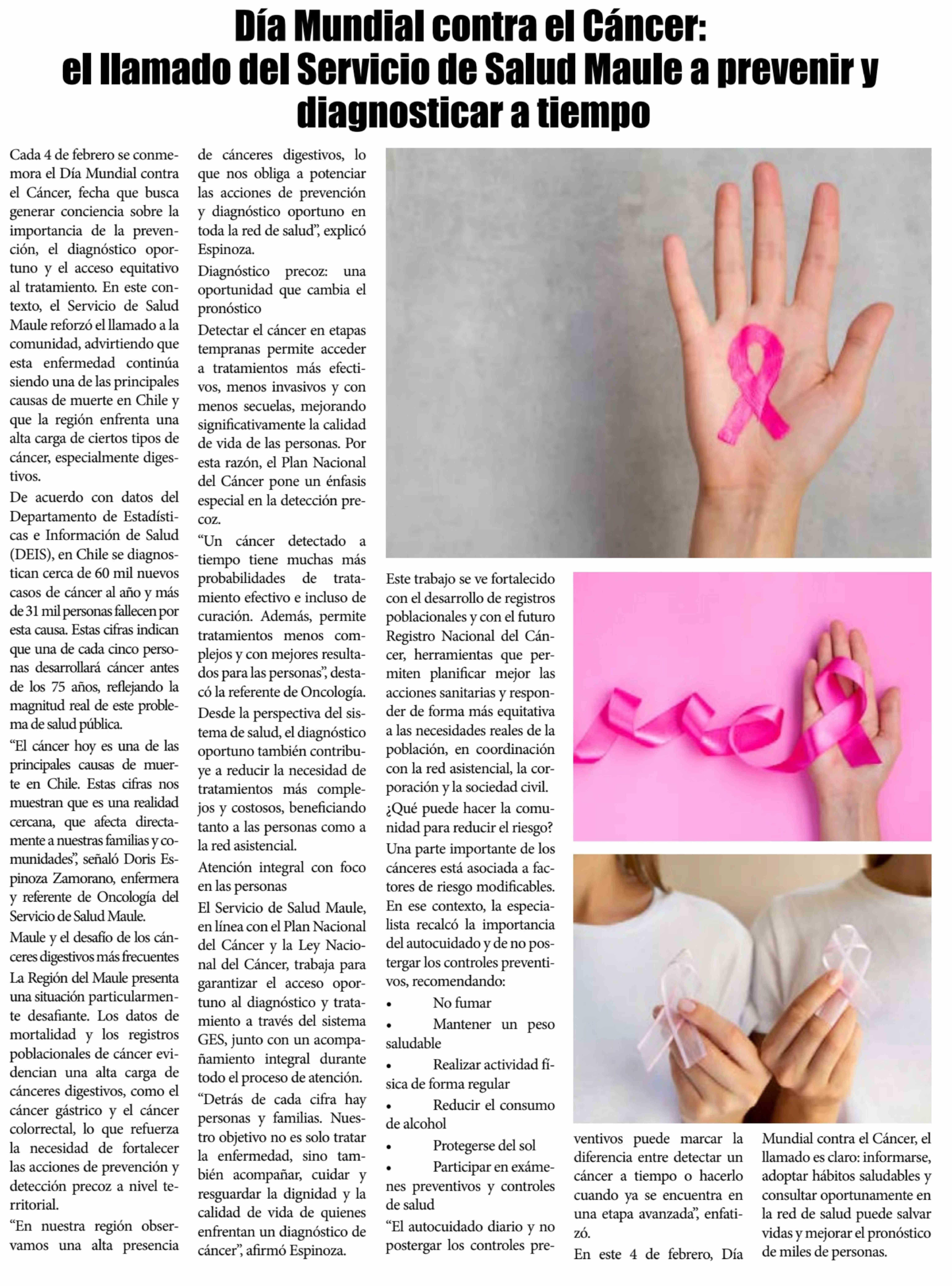 Título: Día Mundial contra el Cáncer: el llamado del Servicio de Salud Maule a prevenir y diagnosticar a tiempo