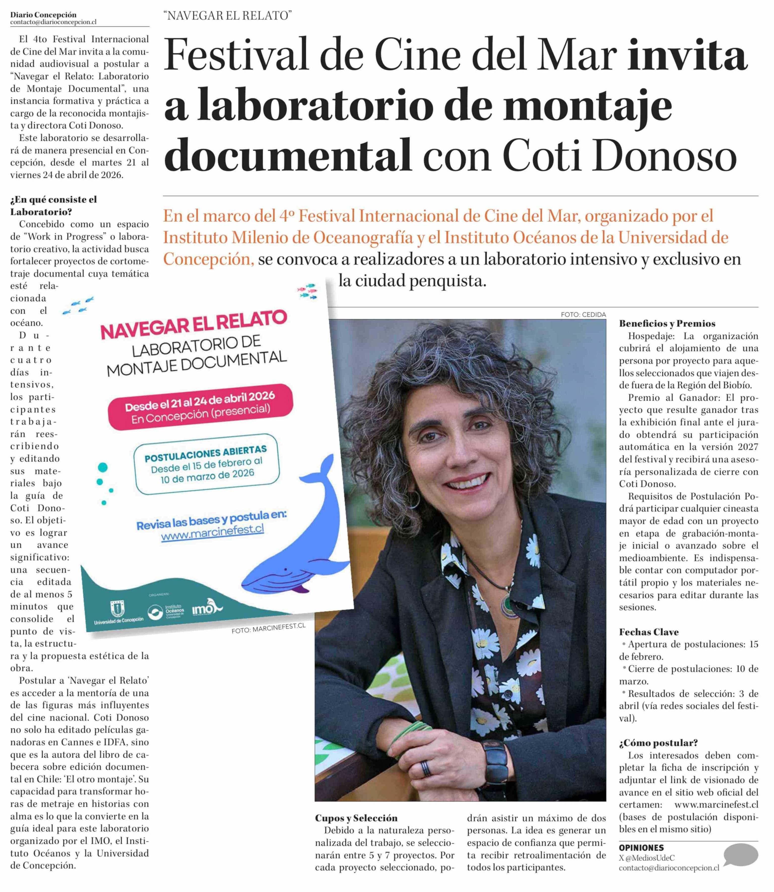 Título: Festival de Cine del Mar invita a laboratorio de montaje documental con Coti Donoso