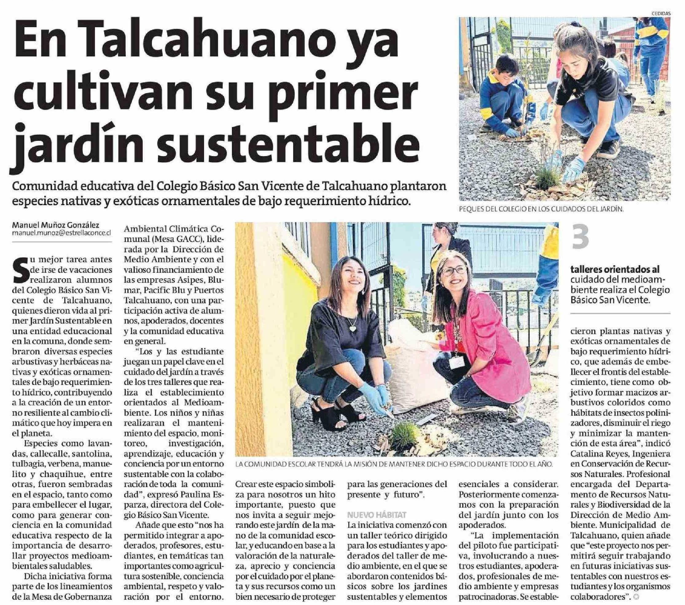 En Talcahuano ya cultivan su primer jardín sustentable 14-01-2025 La Estrella de Concepción |