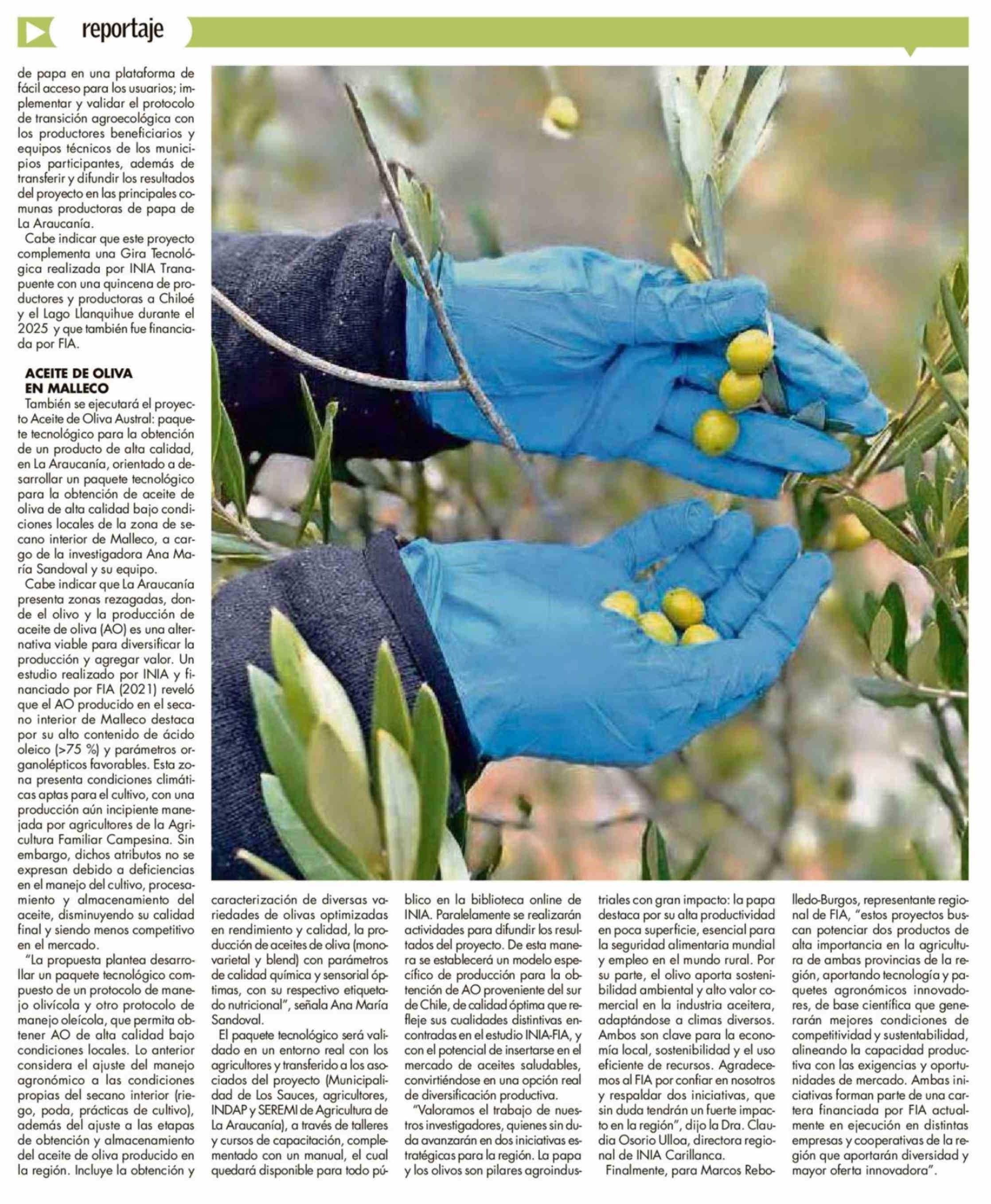 Título: Papa y olivo, ejes de nuevos proyectos agrícolas en La Araucanía
