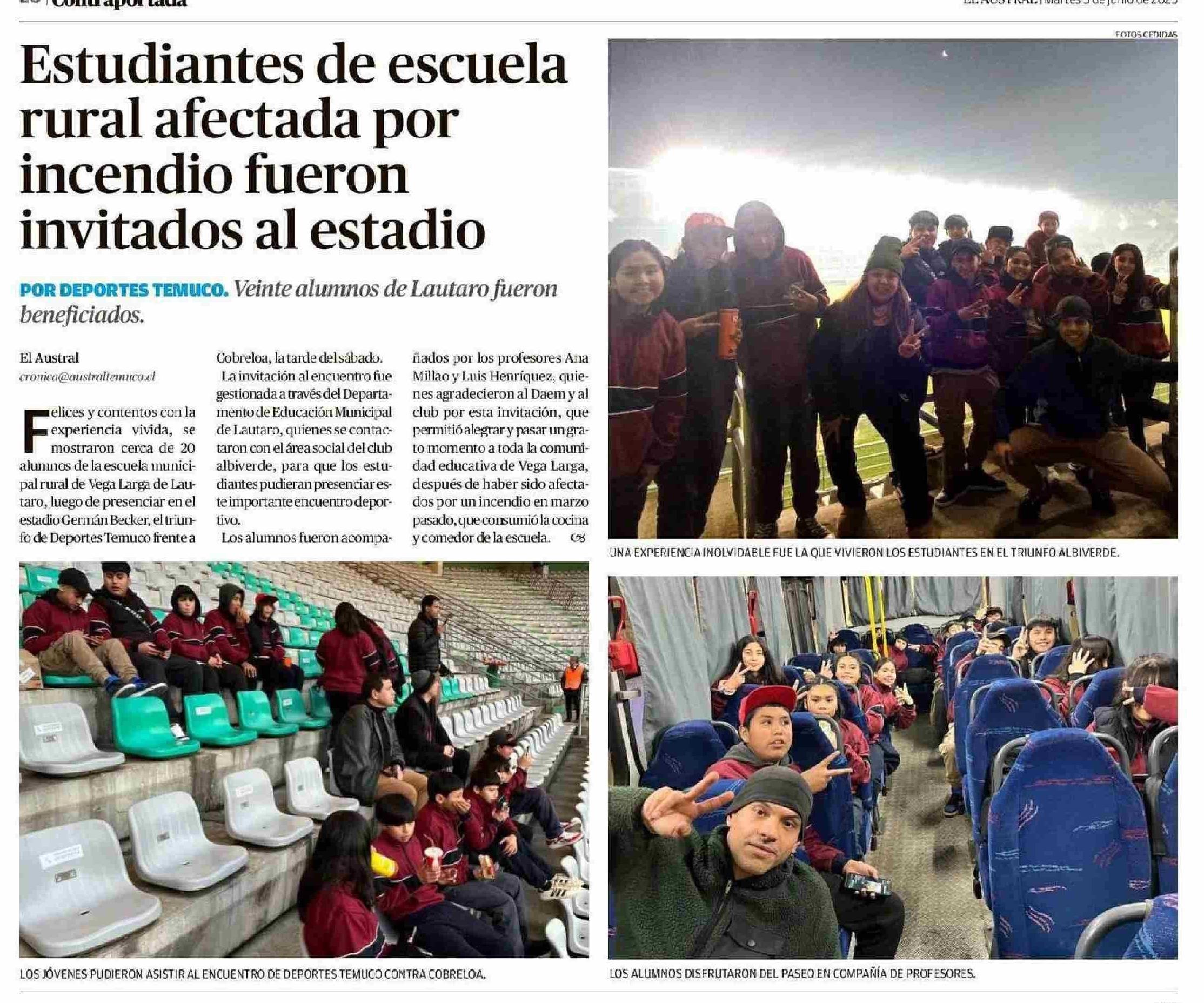 Estudiantes de escuela rural afectada por invitados al estadio incendio fueron 03-06-2025 El Austral de la Araucanía |