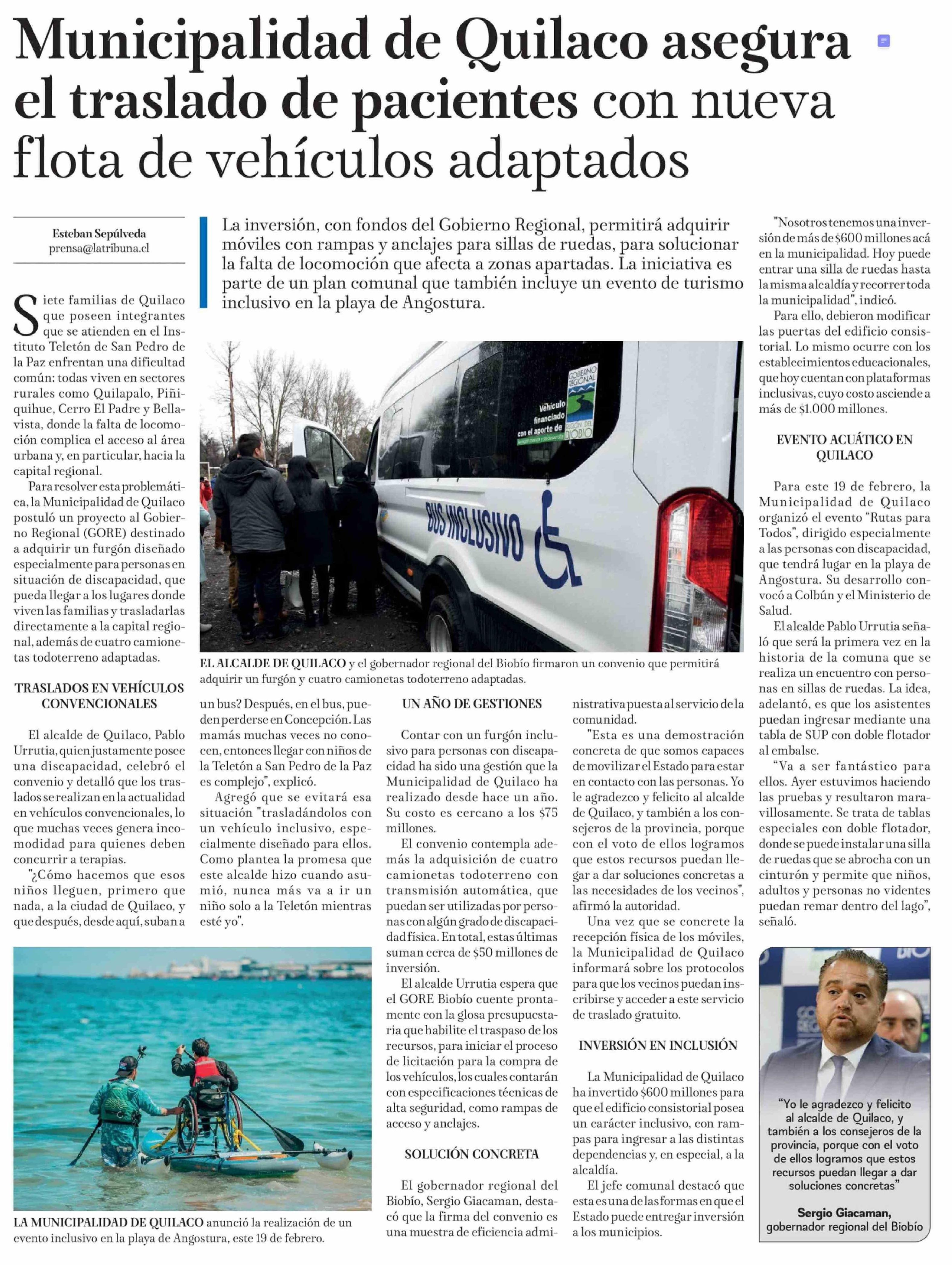 Municipalidad de Quilaco asegura el traslado de pacientes con nueva flota de vehículos adaptados 12-02-2026 La Tribuna |