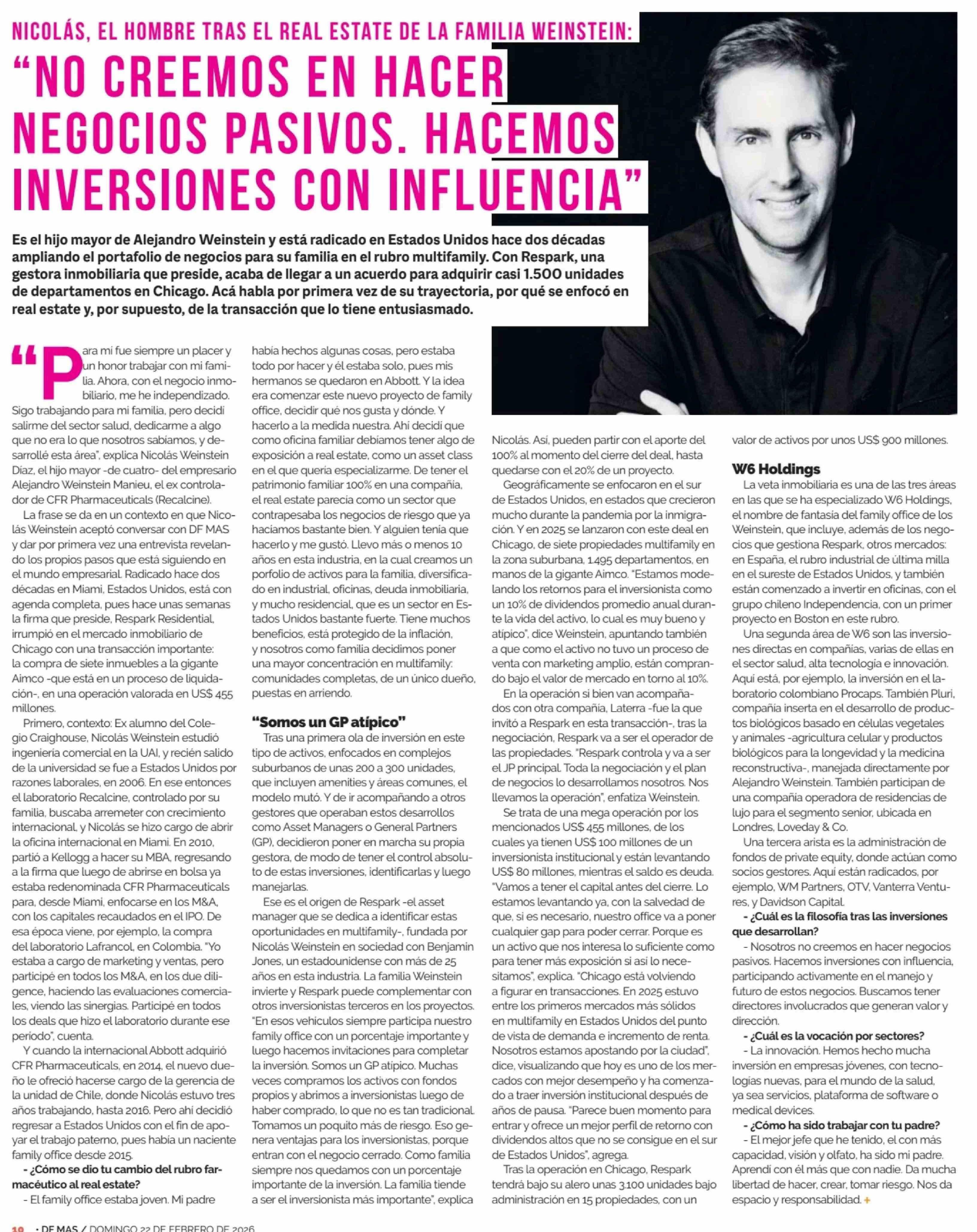 "NO CREEMOS EN HACER NEGOCIOS PASIVOS. HACEMOS INVERSIONES CON INFLUENCIA' 22-02-2026 Diario Financiero |