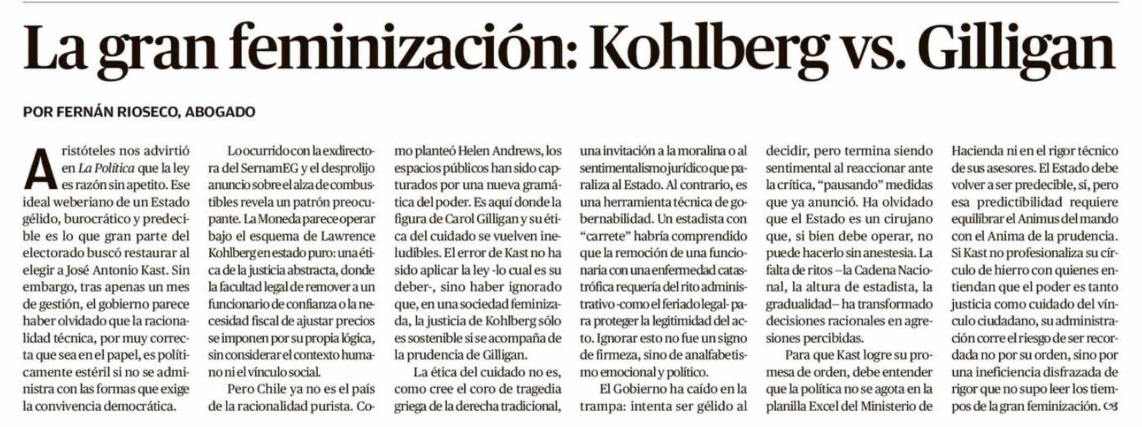 Título: Columnas de Opinión: La gran feminización: Kohlberg vs. Gilligan