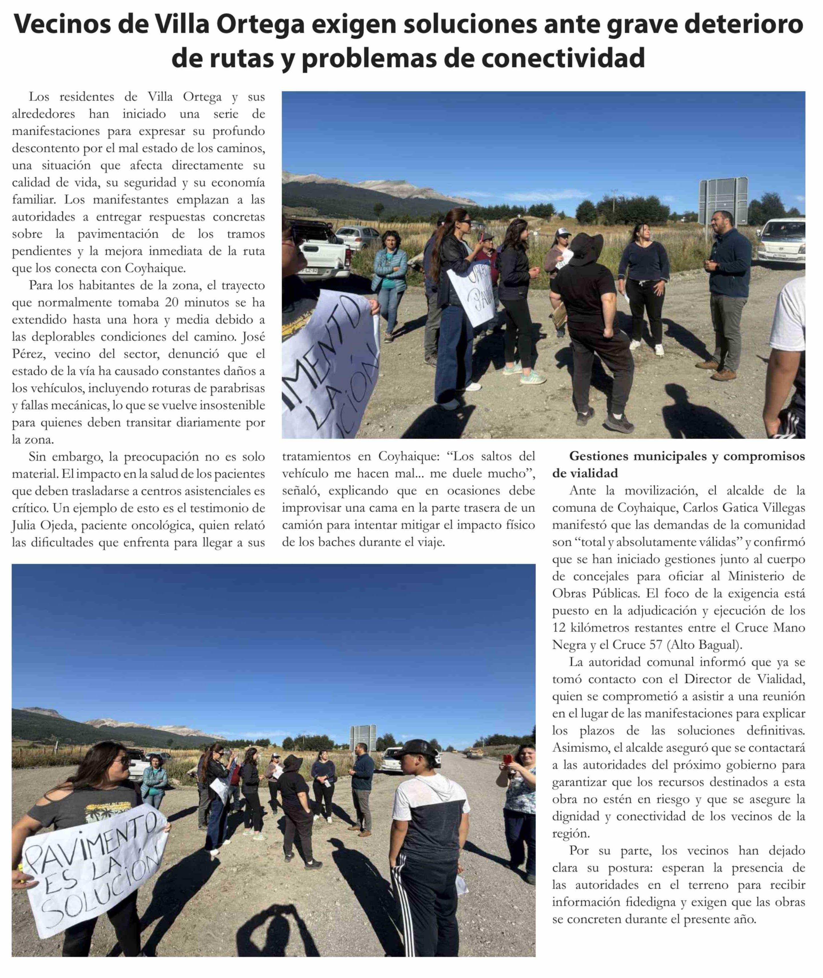 Título: Vecinos de Villa Ortega exigen soluciones ante grave deterioro de rutas y problemas de conectividad