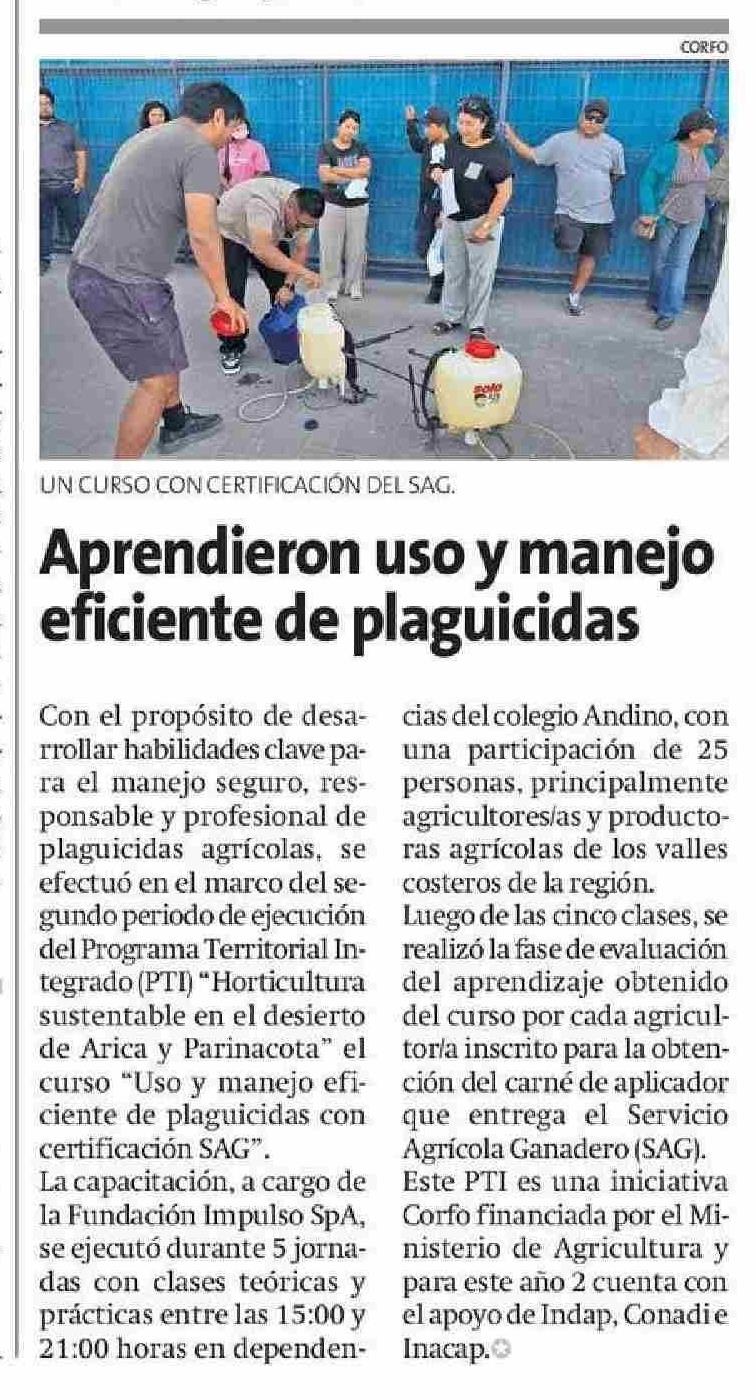 Aprendieron uso y manejo eficiente de plaguicidas 24-01-2026 La Estrella de Arica |