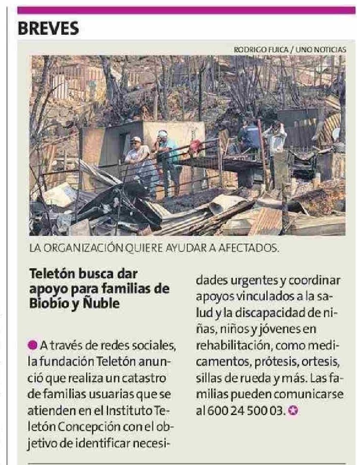 Título: Teletón busca dar apoyo para familias de Biobio y Nuble
