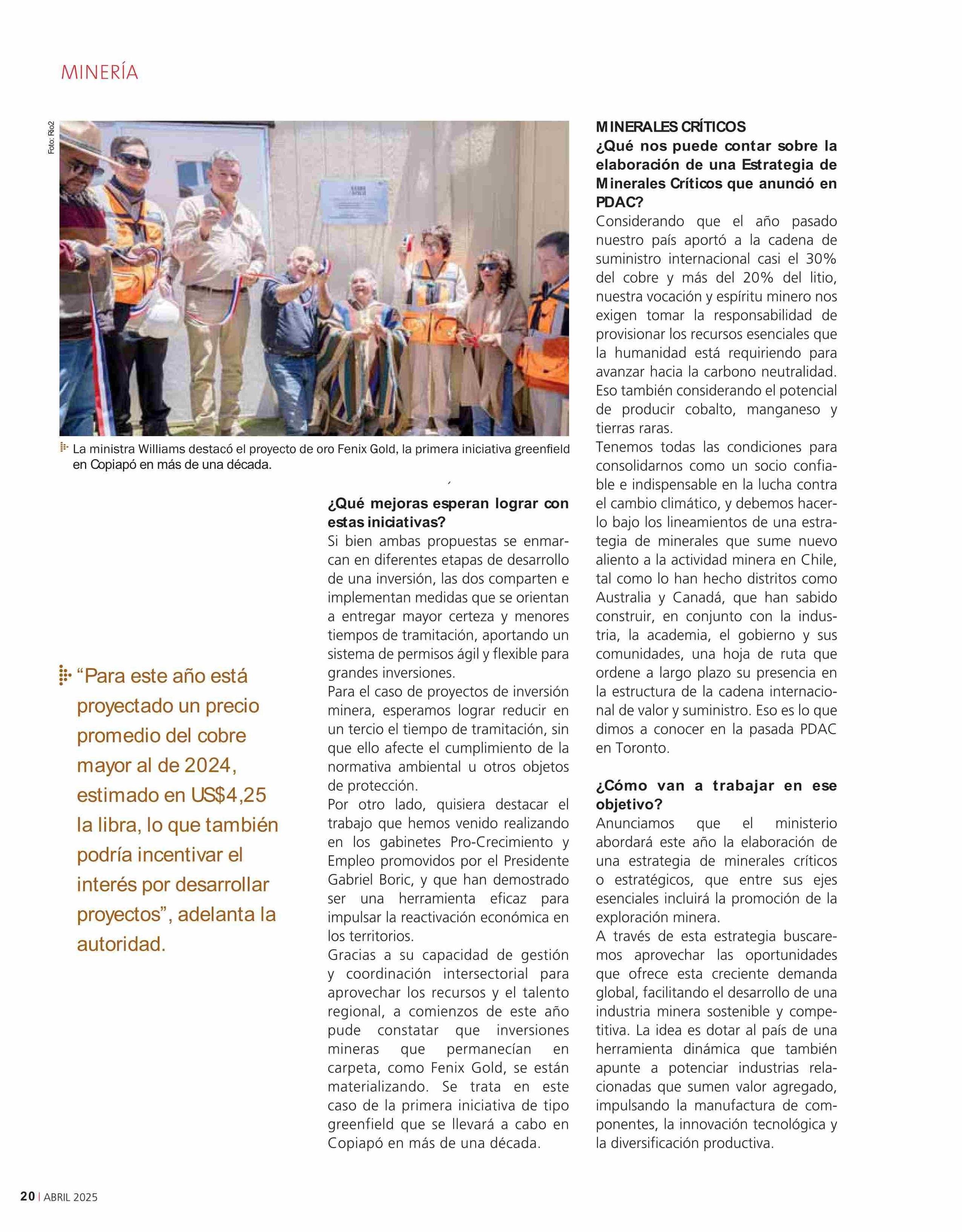 “CHILE OFRECE UNA QUE PERMITE A LA INDUSTRIA PROYECTARSE” 14-04-2025 Revista Nueva Minería & Energía |