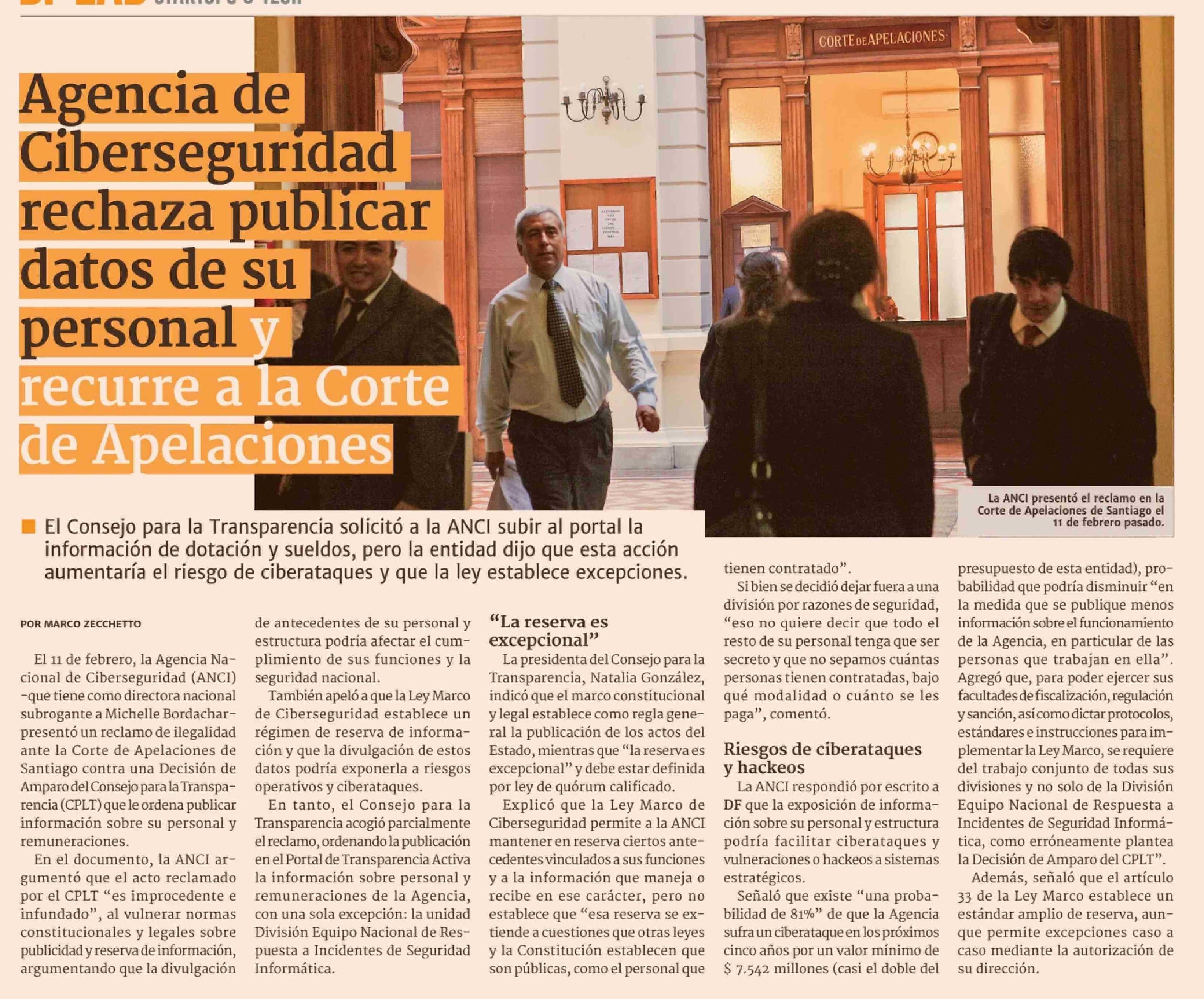 Agencia de Ciberseguridad rechaza publicar datos de su personal y recurre a la Corte de Apelaciones 07-04-2026 Diario Financiero |