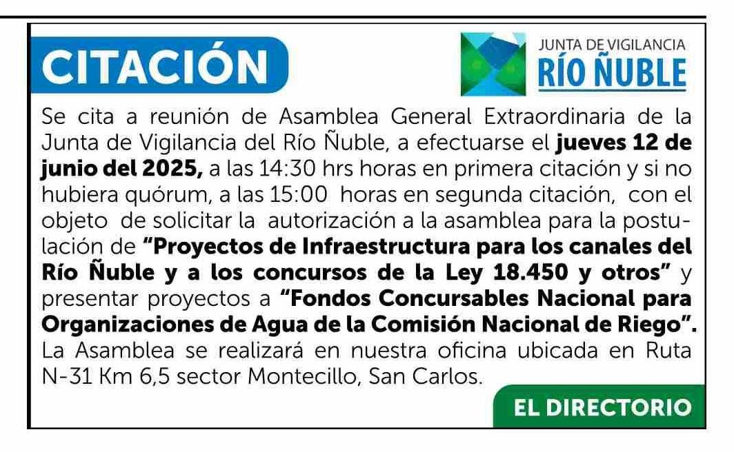 Fecha: 28-05-2025 Sector: Extractos Región: Región del Ñuble