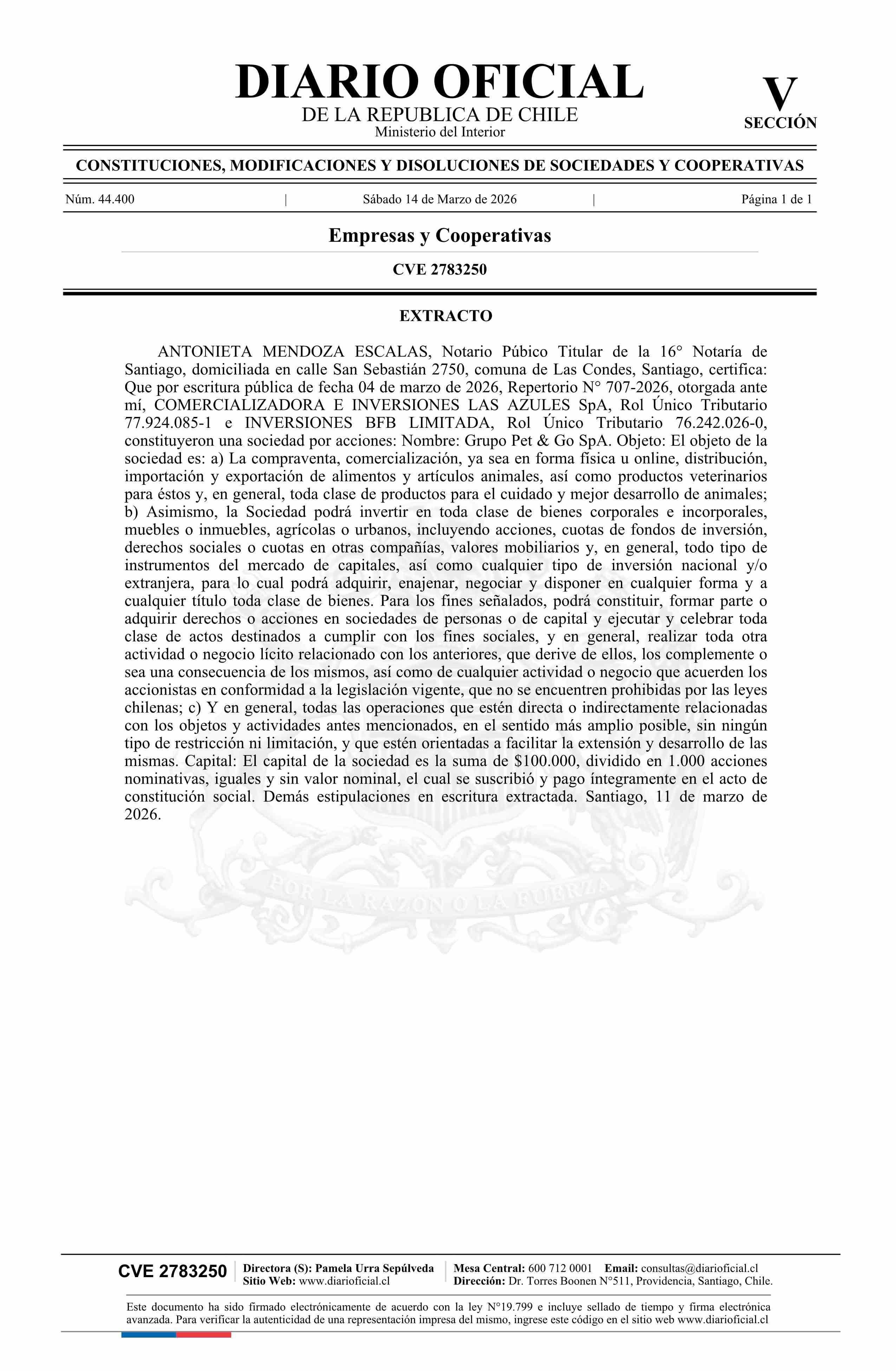 Grupo Pet & Go SpA 14-03-2026 Diario Oficial Edición Electrónica |