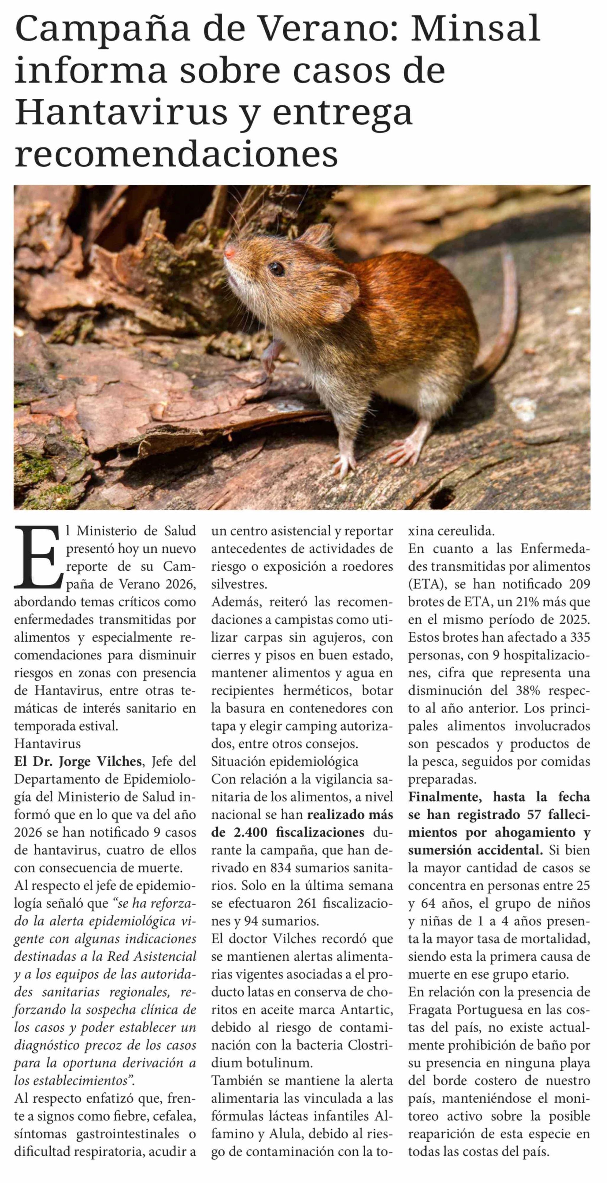 Título: Campaña de Verano: Minsal informa sobre casos de Hantavirus y entrega recomendaciones