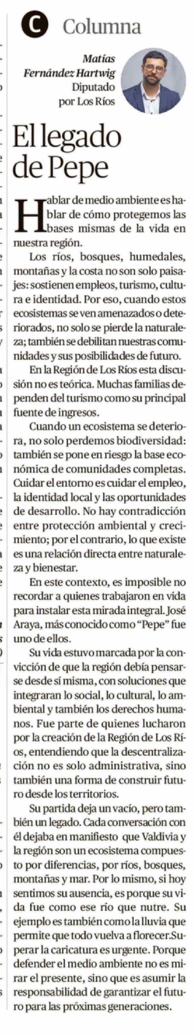 Columnas de Opinión: El legado de Pepe 06-04-2026 Diario Austral Región de Los Ríos |