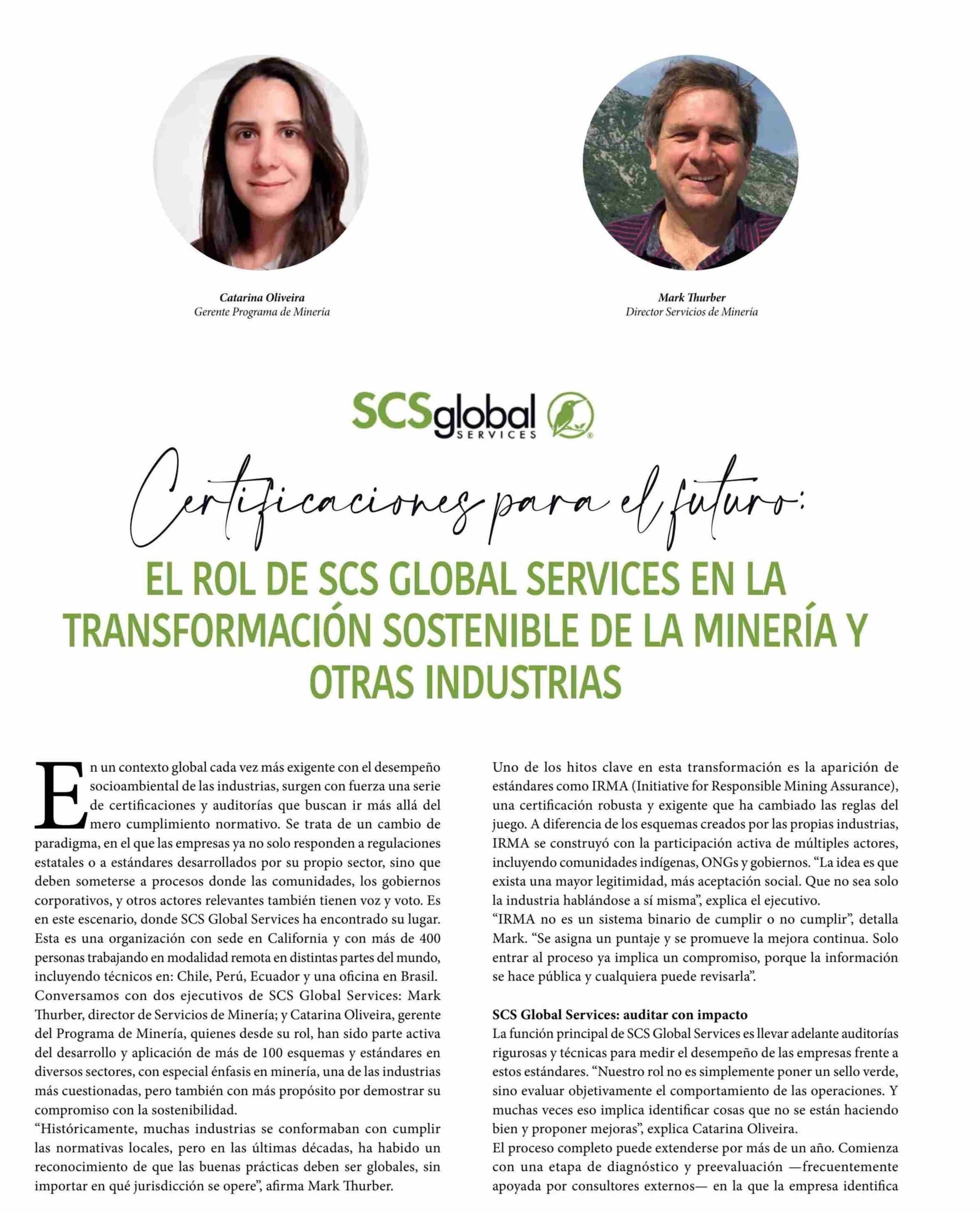 CERTIFICACIONES PARA EL FUTURO EL ROL DE SCS GLOBAL SERVICES EN LA TRANSFORMACIÓN SOSTENIBLE DE LA MINERIA Y OTRAS INDUSTRIAS 23-05-2025 Revista vcmagazine |