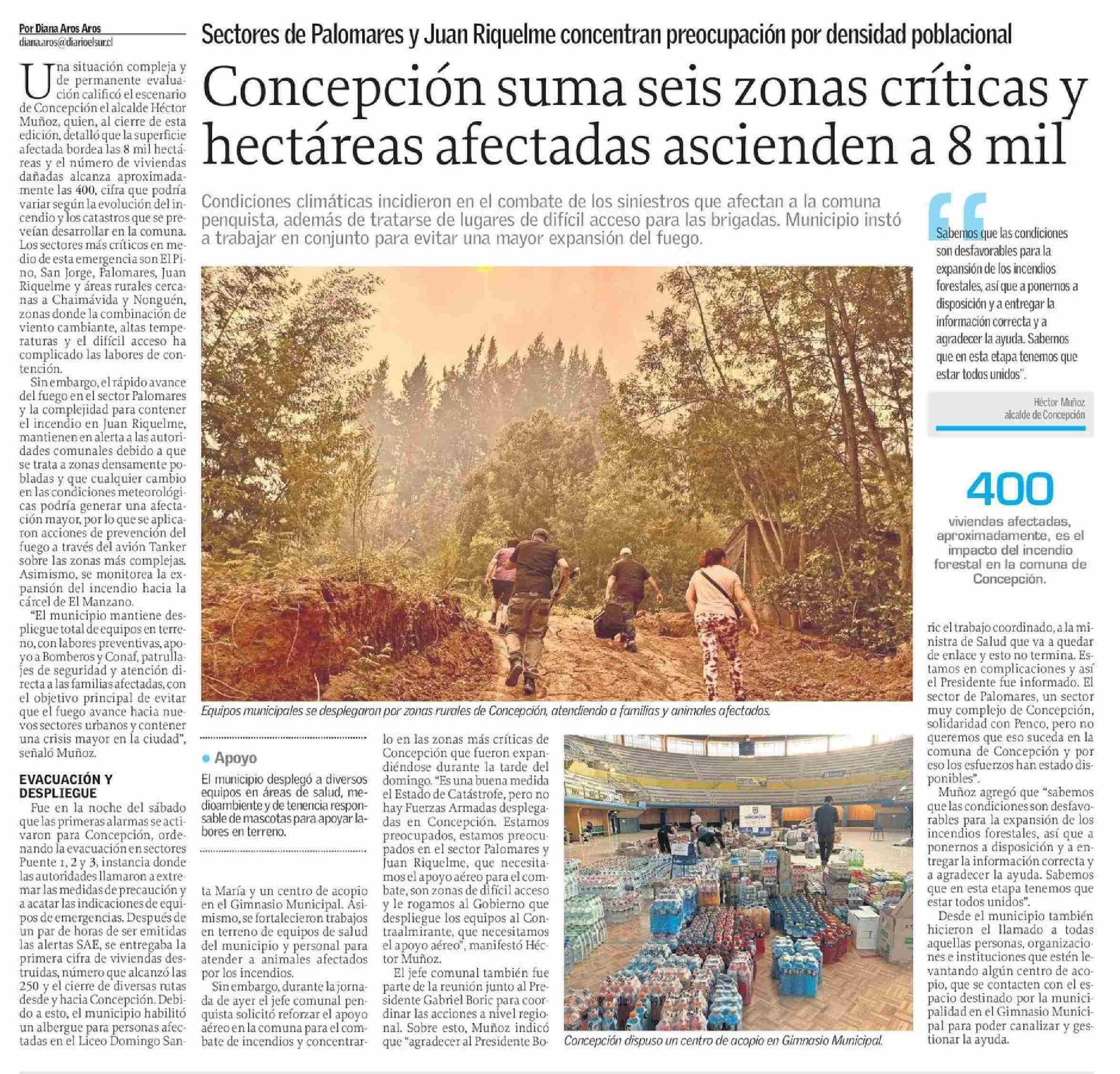 Concepción suma seis zonas críticas y hectáreas afectadas ascienden a 8 mil 19-01-2026 El Sur |