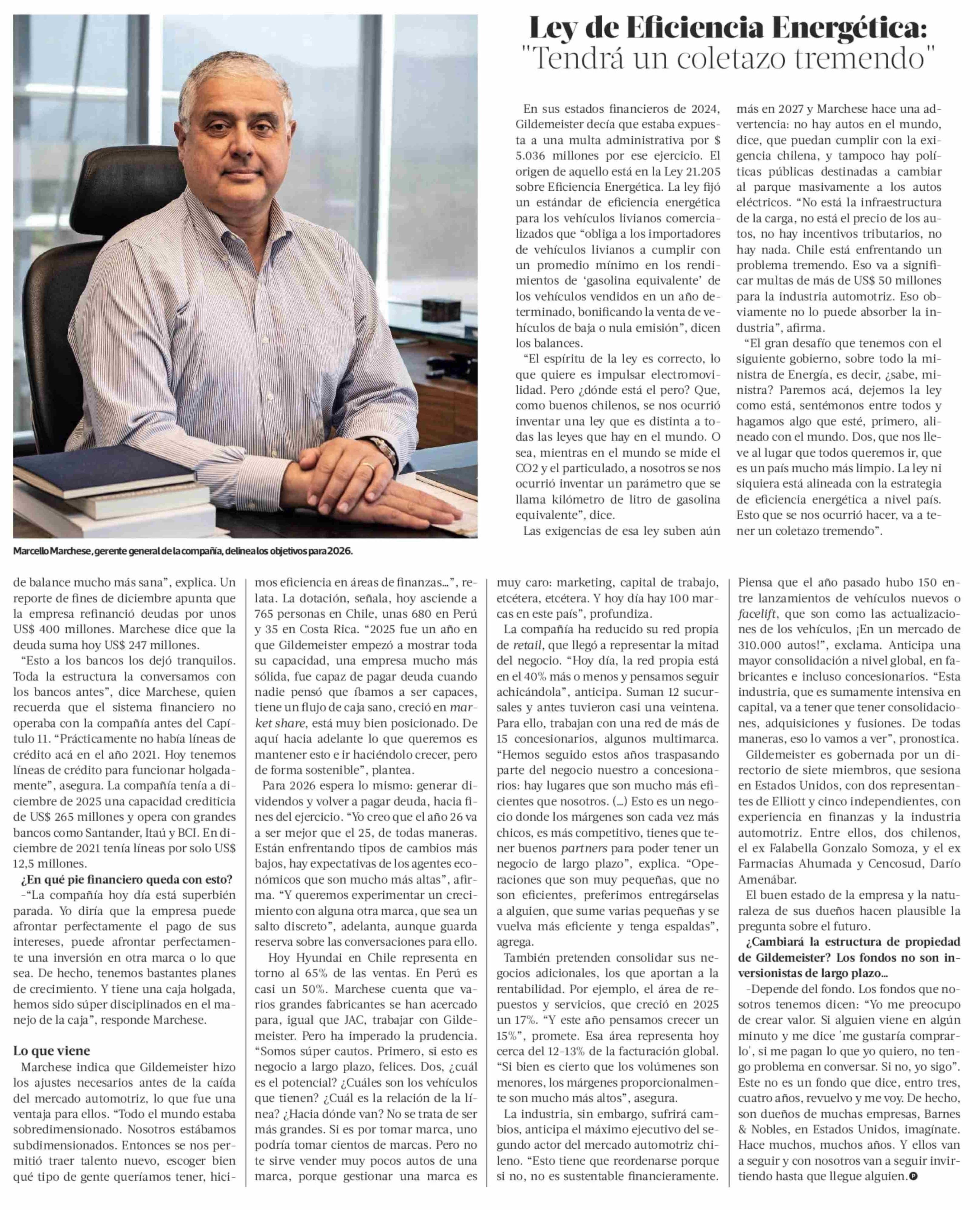 Título: Automotores Gildemeister, cinco años después del Capítulo 11: "La compañía hoy día está superbién parada"