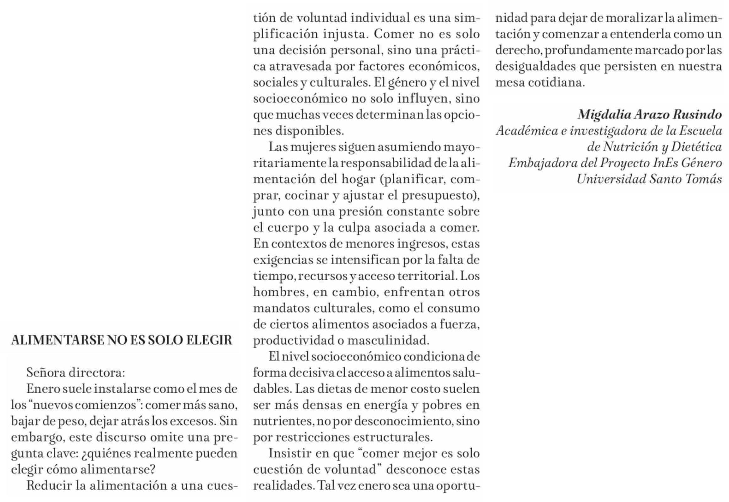 Título: ALIMENTARSE NO ES SOLO ELEGIR