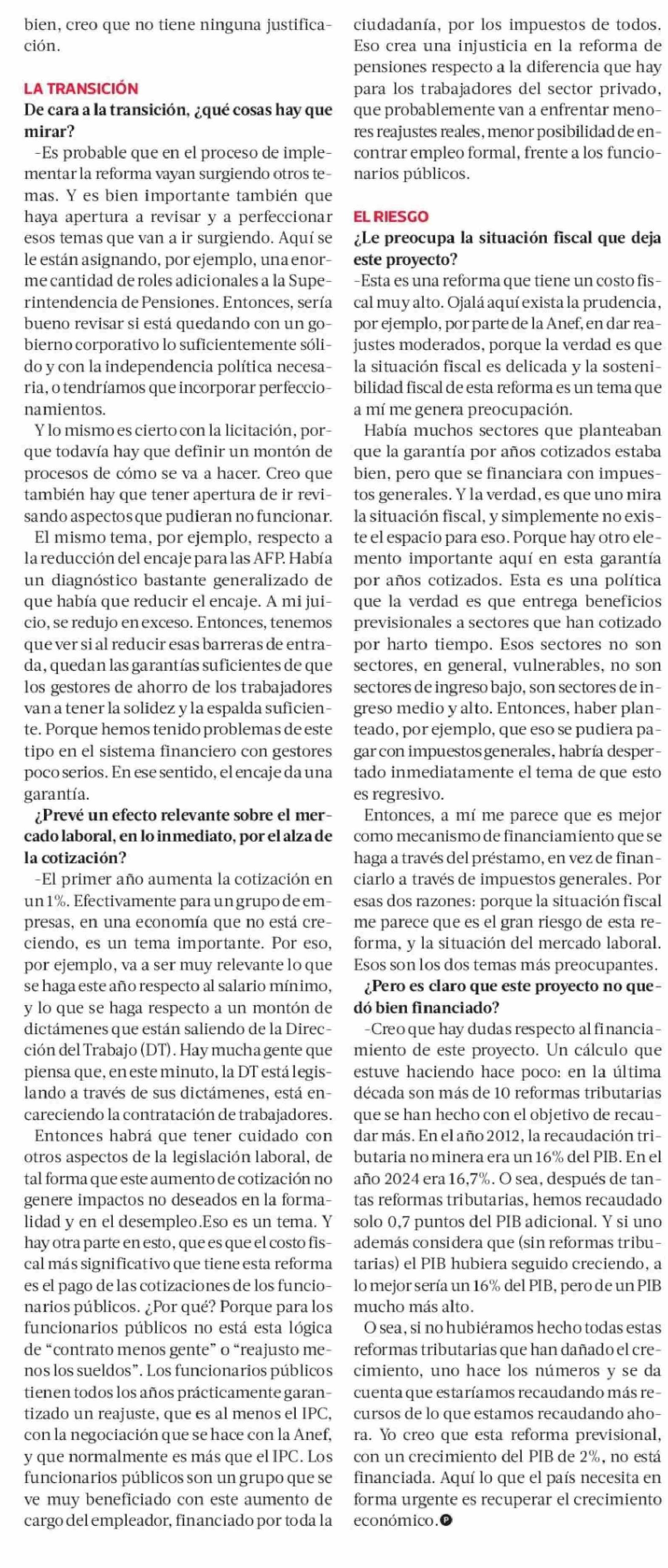 Cecilia Cifuentes: “Me preocupa la sostenibilidad fiscal de la reforma de pensiones” 24-02-2025 La Tercera |